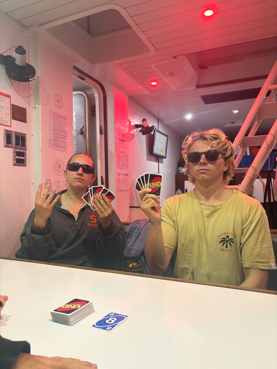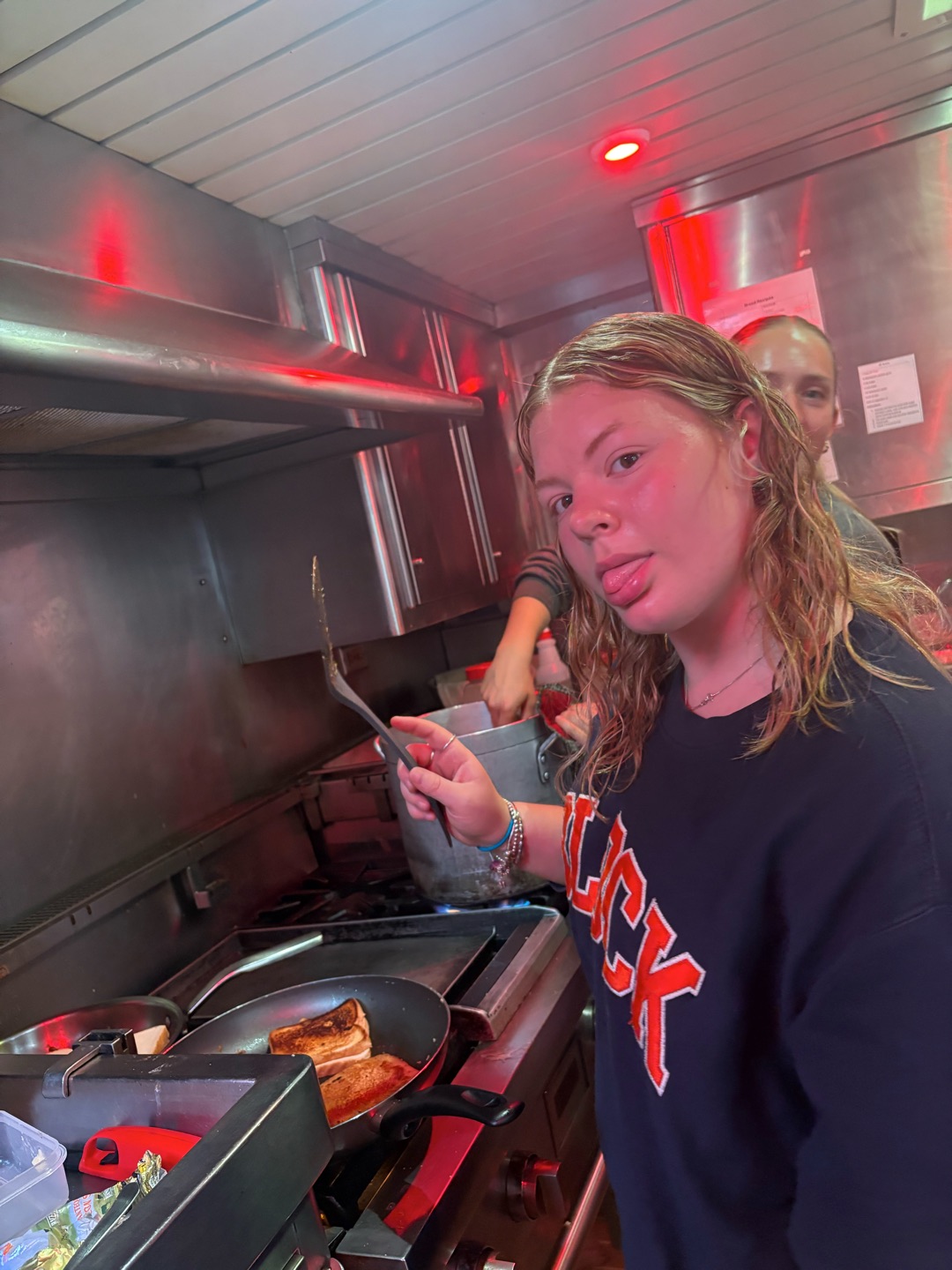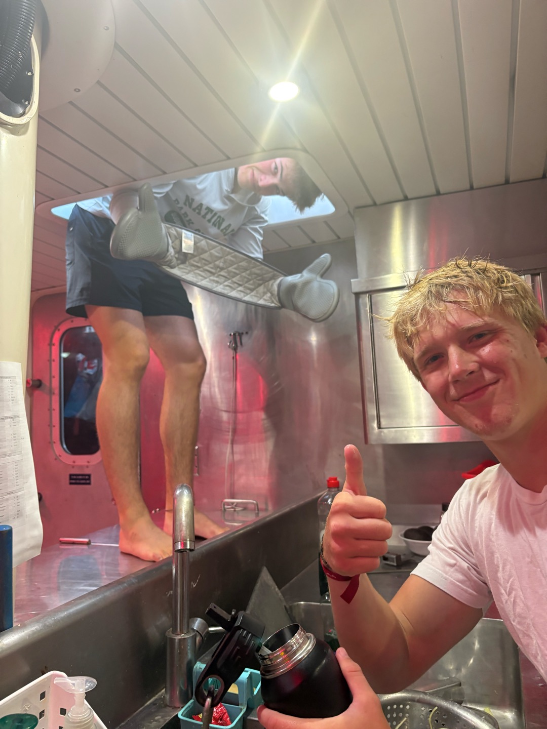 My day started when a soaking wet Teo woke up my watch team around 11:30, claiming it was pouring rain and that we all needed to put on our full foulies. Naturally, we all believed him. We were quite surprised when we came up on deck to absolutely zero rain. Watch team 3 had fallen victim to another watch team 2 prank, who thought it would be funny to make us all think it was raining by spraying Teo with the hose before having him wake us up. Watch team 2 is going to have to watch their backs on the next passage because we are not going to hold back. The rest of our 4 hours of watch was filled with the usual ramen, boat checks, and more ramen. Nacho made his world-famous cement, an Argo classic. We then all headed to bed, excited to arrive in Morocco in the morning. Most everyone, expect watch team 2 (seems like karma to me), got to sleep until 11:30, which provided us a much needed break after the 3 day passage. The waves at this anchorage are crazy, though. It still feels like we are underway. For lunch, Amelia, Emily, and Liv made some delicious grilled cheese sandwiches and soup. After the cleanup, we all had marine biology class, where we learned about coral reefs, and then had seamanship, where we continued learning navigation. After classes, Bryson, Hailey, Cameron, Teo, Alexa, Sam, and I attempted the nav master homework, which meant spending about an hour poring over the charts trying to find the right points and lights. Even one little mistake can change your final answer by a ton. My brain was so fried that I had a bit more trouble doing basic addition than I would like to admit. We all then took freezing cold ocean showers together, and as Cameron and Teo put it, the water felt like an ice bath. We then had an amazing dinner of spaghetti and garlic naan. Shout out to Maria for making the best naan of the trip so far! We’re all super excited to be in Morocco, and we’re looking forward to all the cool things we’ll get to do while we’re here! Also, see you soon, Rachel!! You need to come back