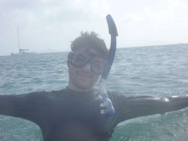 We started the day with a colorful breakfast of green eggs and pink and blue muffins made by Emily and Mike. Then we had some time to finish our log books and do whatever we wanted until 9:45 when Jack came and started the SLD Class. Before lunch, some people started windsurfing lessons with Jack and Josh, but the wind was too hard, so the classes did not last long. After eating Super Sun Chip Nachos for lunch, we split into two groups, one group that wanted to snorkel and the other that just stayed chilling in the boat. Now when the clean-up of dinner is finished, we will have our first Marine Biology test.
