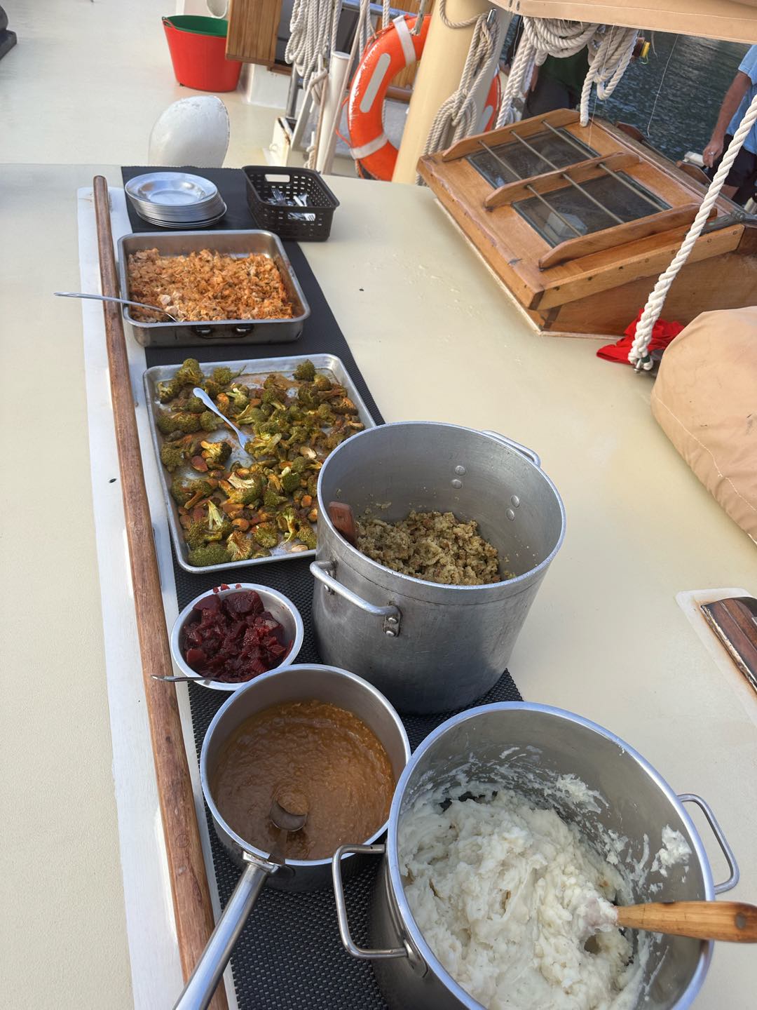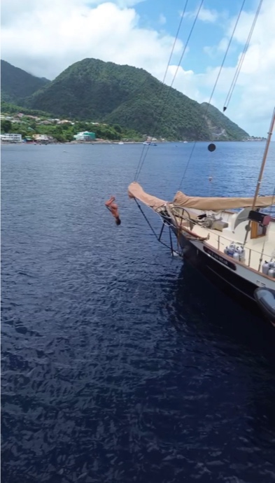 We arrived at Roseau about 8 hours early, which was nice. While the students put the boat to bed and started their first BA, I went ashore to clear in. It’s like a 20-minute walk to the ferry terminal where Customs and immigration are. It took about an hour this time, for some reason, for the customs officer to look through all the boat paperwork and passports, but she cleared us in and out, which was nice, so I didn’t have to go back to clear out. After that, I went to the grocery store to do some provisioning for the boat. I got it done in about an hour but then got told that the store’s card machine was down, while I had two full shopping carts to check out with and not enough cash. I called the boat, where we faced our next hurdle. I talked the staff onboard through how to open our 30-year-old, who was extremely hard to open, dial safe, and get cash out. Once they got it open, Meg brought me cash, and we finally left the store. Meg got some ice cream, which she shared with me during the taxi ride back to the dock. That night, Allie made Thanksgiving. Chicken, mashed potatoes, gravy, instant stuffing, homemade pumpkin bread, and canned cranberries. My absolute favorite meal that we do. It was a perfect ending to a perfect day.
