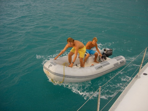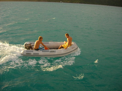 We started off the day with high winds in Gorda Sound. We first got our secondary anchor up in Tiny Tim, then got the primary anchor up and headed off to Salt Island by 8 a.m. We had an awesome sail down the channel and reached our destination in no time. Upon arrival, we sent Mark and Chantale on a recon mission to check the seas and current at the dive site we were going to dive, the RMS Rhone. Unfortunately, the seas were fairly substantial, and it would have made for an uncomfortable dive, so we raised anchor and headed to Great Harbor Peter. We ended up doing a cool dive on the Rhone anchor in Great Harbor Peter, rafted up with Ocean Star, and hung out in the afternoon until our early dinner. We then headed for our night dive on the Fearless. The dive was incredible and represented a culmination of our diving experience. It was, after all, a deep wreck and night dive. Awesome day.