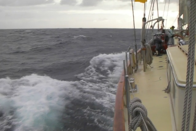 Another great day of passage as we continue to head westwards across the Indian Ocean. The swells have subsided a little today, and the wind remains fresh as we surf and cruise the waves averaging 8-8.5 kts. Everyone is getting good at downwind steering as we follow the trade winds towards Mauritius. Today’s classes were OCB and MTE. In Marine Biology, we concluded our classes on invertebrate taxonomy and looked at some shells I had collected. Everyone was also issued with a map of Asia to annotate with interesting oceanographical features of our voyage and add to their logbook. Everyone’s logbooks are coming along nicely as they sketch and describe some of their favorite marine organisms. Following classes, we had shower time on deck and then an early dinner to allow clean-up before the sunsets. It’s now 7:30 pm, and Watch Team 2 has the deck. It is my turn to tell the watch story tonight about something beginning with “X.” A tricky one, “(e)Xhibition” – I’ll tell them about my trip to the Edinburgh Festival with the “Harston Harmonites” steel band when I was younger!