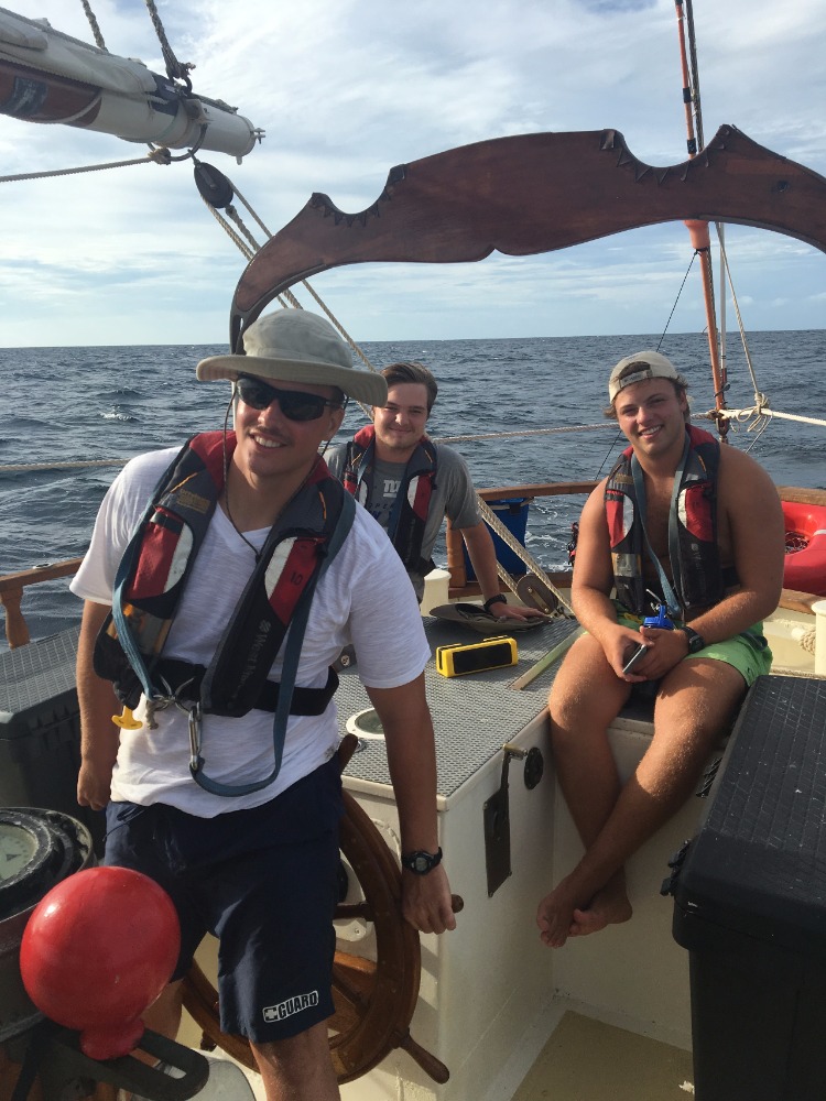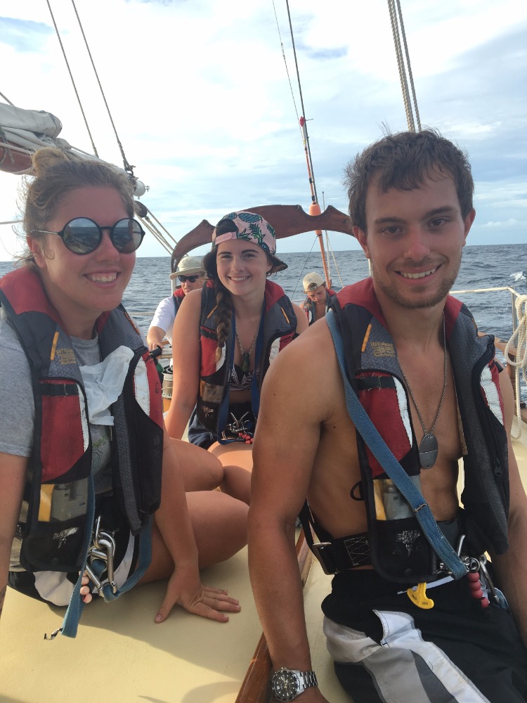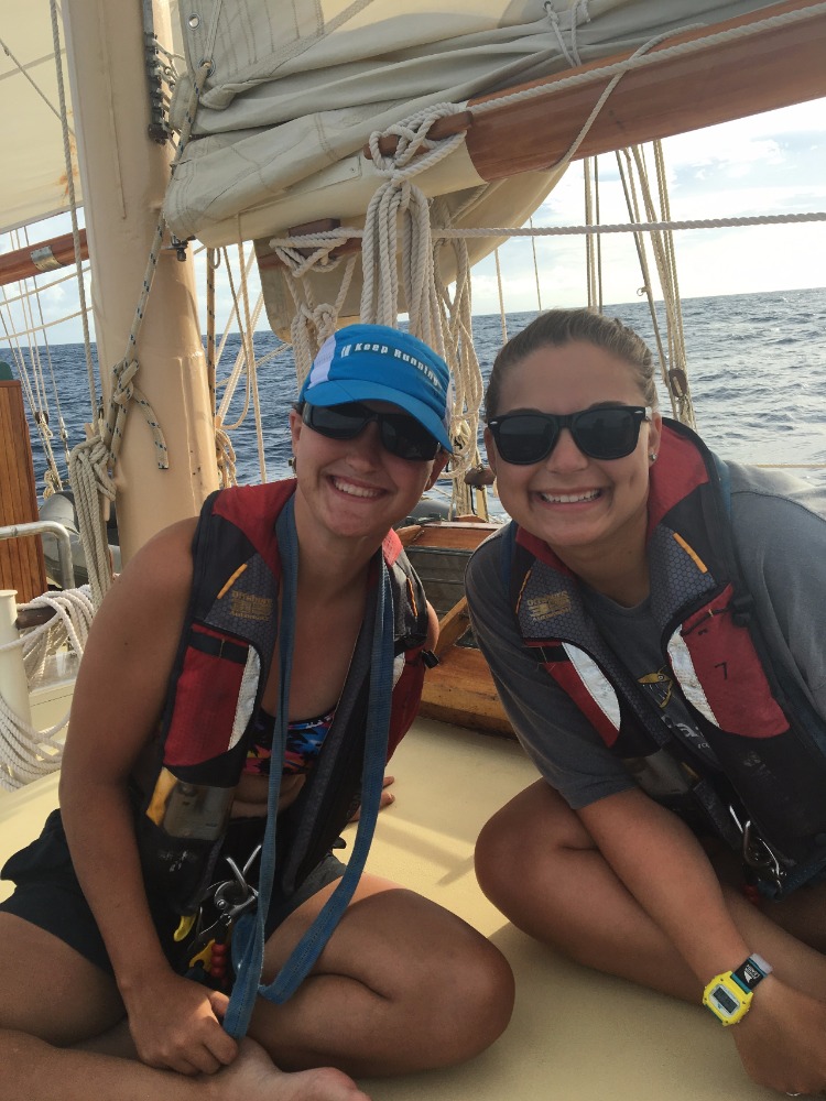 After a midnight to 4 am shift filled with philosophical musings and horrible Acapella, Watch Team Two awoke to clear sunny skies for our second day of passage. Watch Team Three had been lucky enough to spot some bottlenose dolphins off the port side right around sunrise and excitedly shared the news with the rest of the crew as everyone slowly woke up. Soon, the jib was raised, and we were sailing.