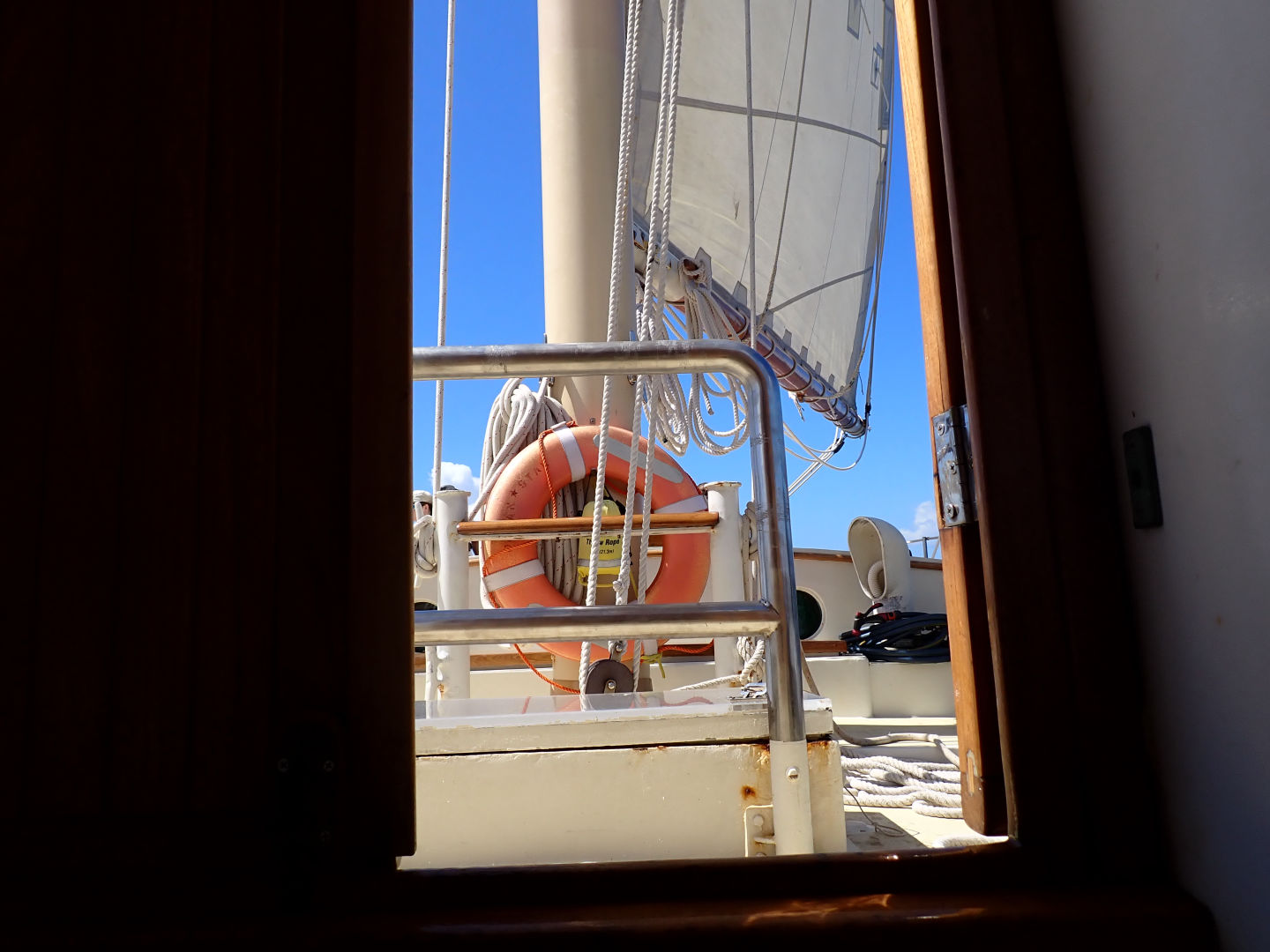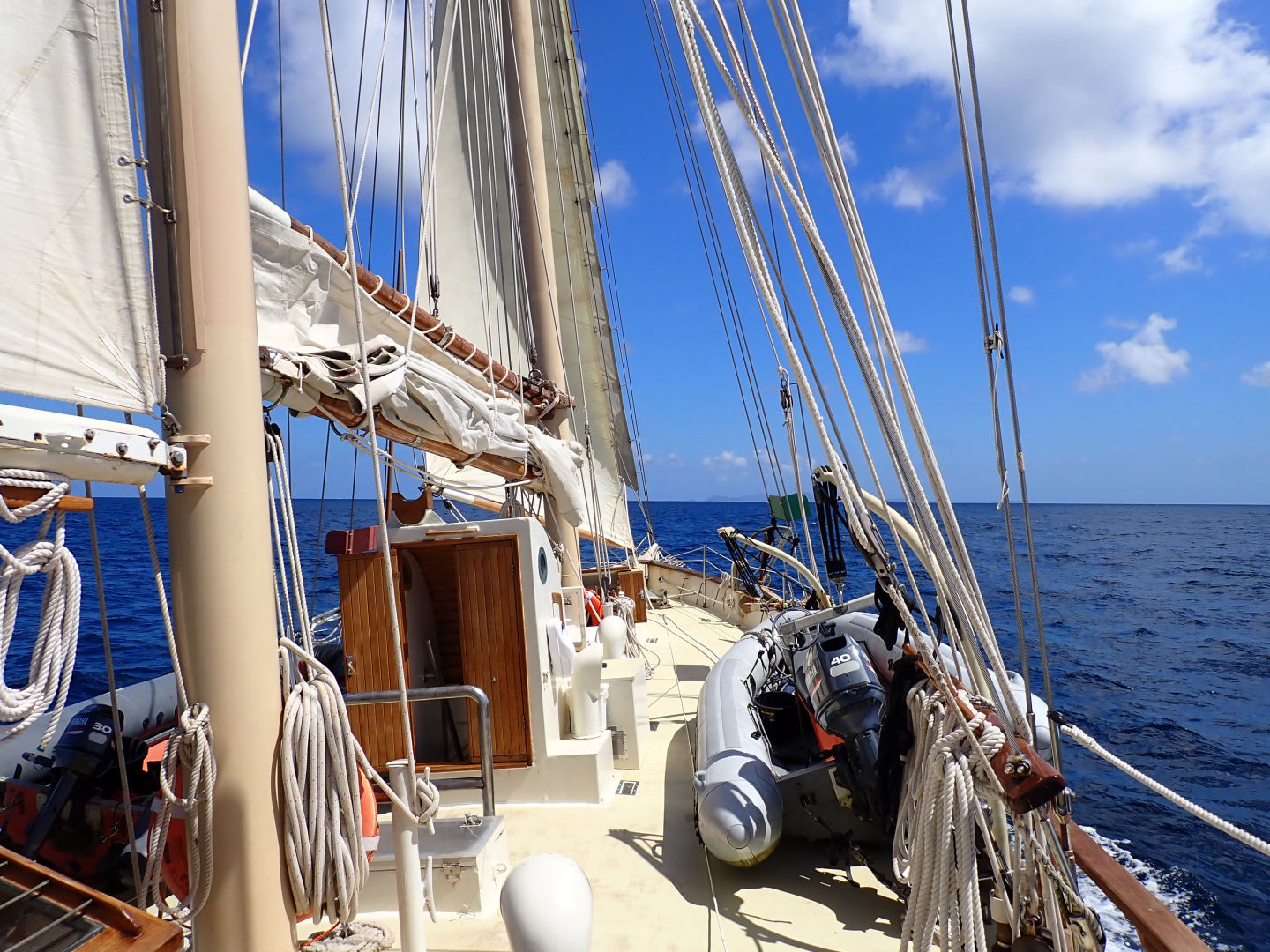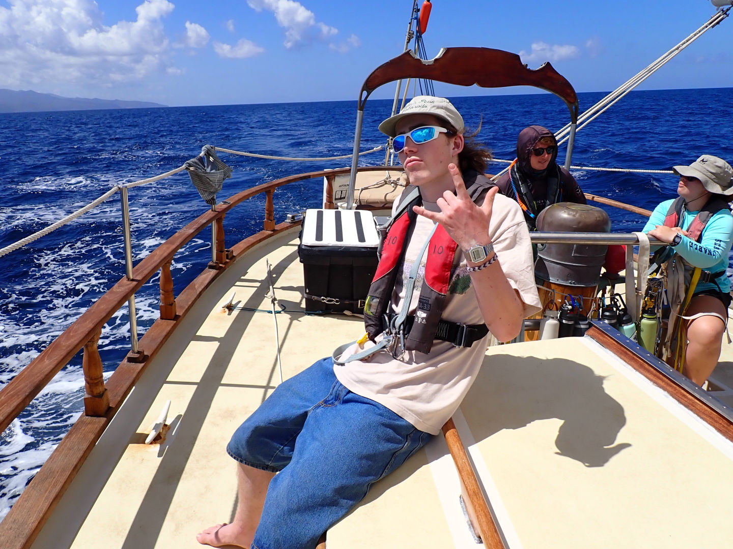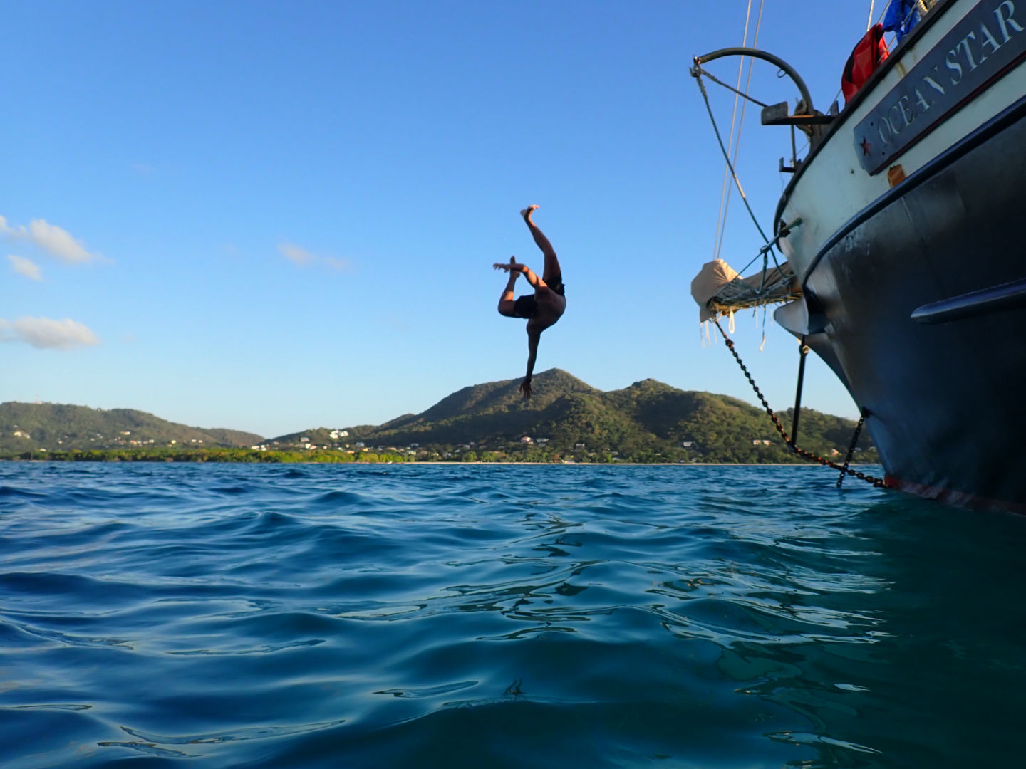Today, we got up early to start our passage from Grenada to Sandy Island in Carriacou. We got up a new sail today! The flying jib. It was super cool to have up. We had almost all of our sails up today. Our sail was beautiful and serene. During our short passage, we had our seamanship presentations. Zoe and I’s presentation was about parts of the sail and points of the sail. A little after lunch, we arrived at Sandy Island. The island is beautiful, and the water is crystal clear. We dropped the anchors and then had Oceanography. Class was interesting, and it was fun to learn new information. After, we had to move the anchors so that if they dragged, they wouldn’t drag over a coral reef. Once that happened, everyone went snorkeling. A bunch of us were practicing some free diving and going to the bottom. We also were doing jumps and flips off of the boat. It was tons of fun; hopefully, we will get a chance to do more snorkeling tomorrow. We had delicious nachos for dinner, and it was the perfect meal to end a pretty awesome day. I believe that if the current is not too strong, we get to swim to the island tomorrow!