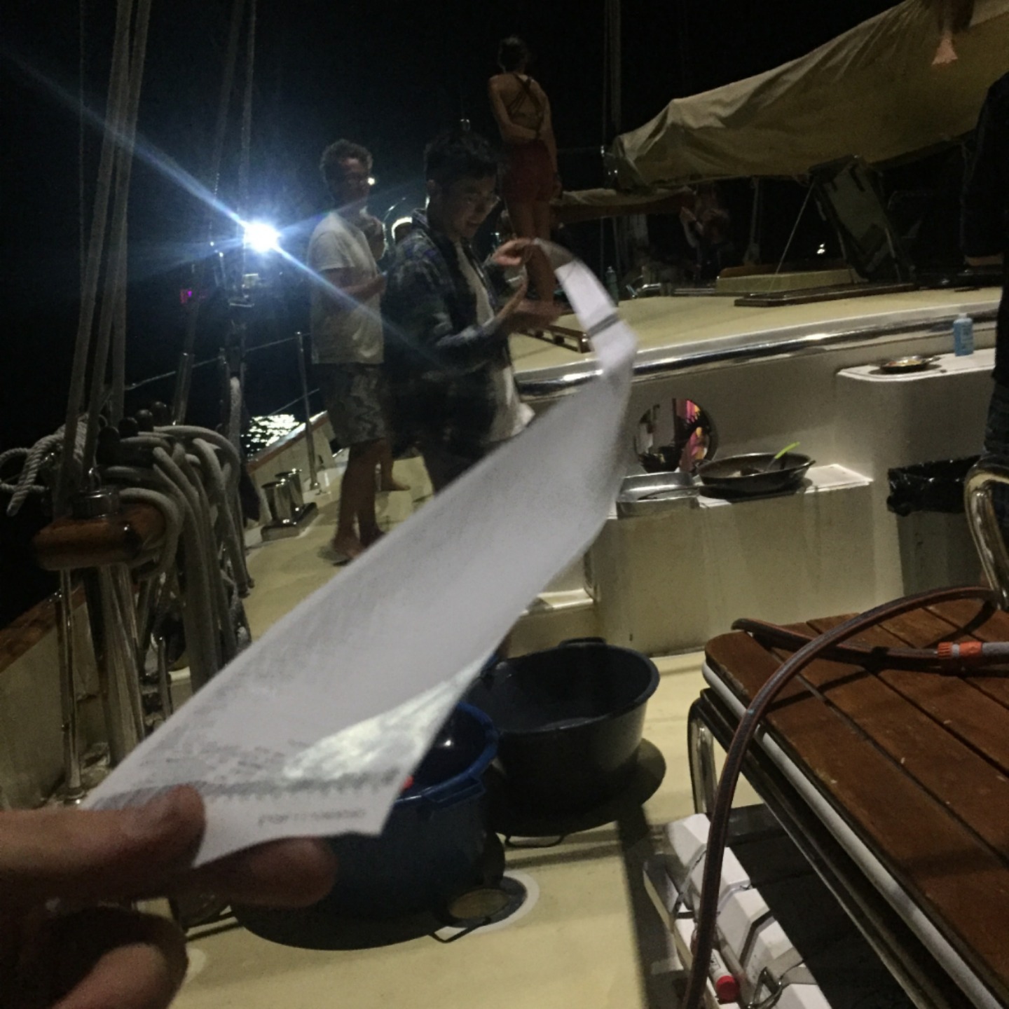 Pictured; Ian fueling up, a whooooole lot o’ provisions, Amy making a serious face, Tim making an even more serious face, crew pull-ups, a super-long receipt, Alexa full of energy ft. Peter, Alex, and Sam looking confused as to what to do with such a large amount of food and a very nice-looking yacht.