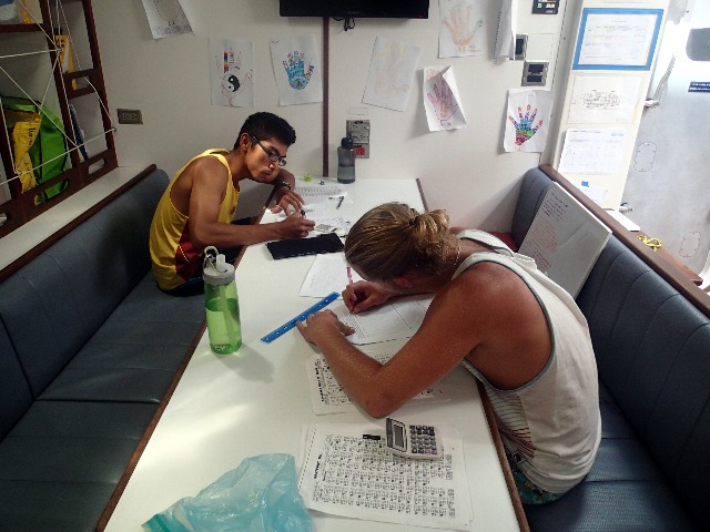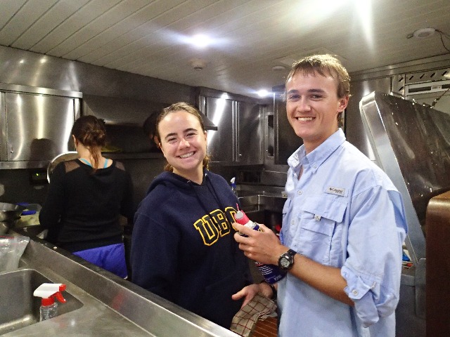 Today started off with a true breakfast feast of fried eggs, toast, sausage, baked beans, tomatoes, sauteed mushrooms, and a fruit salad! Thank you, Siva, Sam, and Caroline :)! After that, we had an oceanography review for an hour, followed by free time for studying and shore time. This was one of the quietest days on Argo we’ve had, as everyone was either hard at work in the saloon or in their cabins or using the internet on shore. Personally, I split my time getting work done on the oceanography research project/paper/presentation, which will be happening presently (right after I finish writing this blog, as a matter of fact!) and getting some emails sent at The Velvet Jazz Lounge, which has the best internet in town (and the best name, clearly). Lunch was a bowl of curry-fried rice (yummy) with leftovers, then the PSCT students had their currents and tides exam and free time, while the rest of us had free time the whole afternoon (more internet and working for me, with a scrumptious milkshake for good measure). Oh! Almost forgot provisioning, which at the beginning of this trip seemed like the most formidable thing in the world, but now we got everything squared away in 30 minutes flat! And only about a third of us do it, too! Dinner was a beef stir fry with some Cajun chicken and more leftovers, with said presentations soon to follow. Wish us luck!