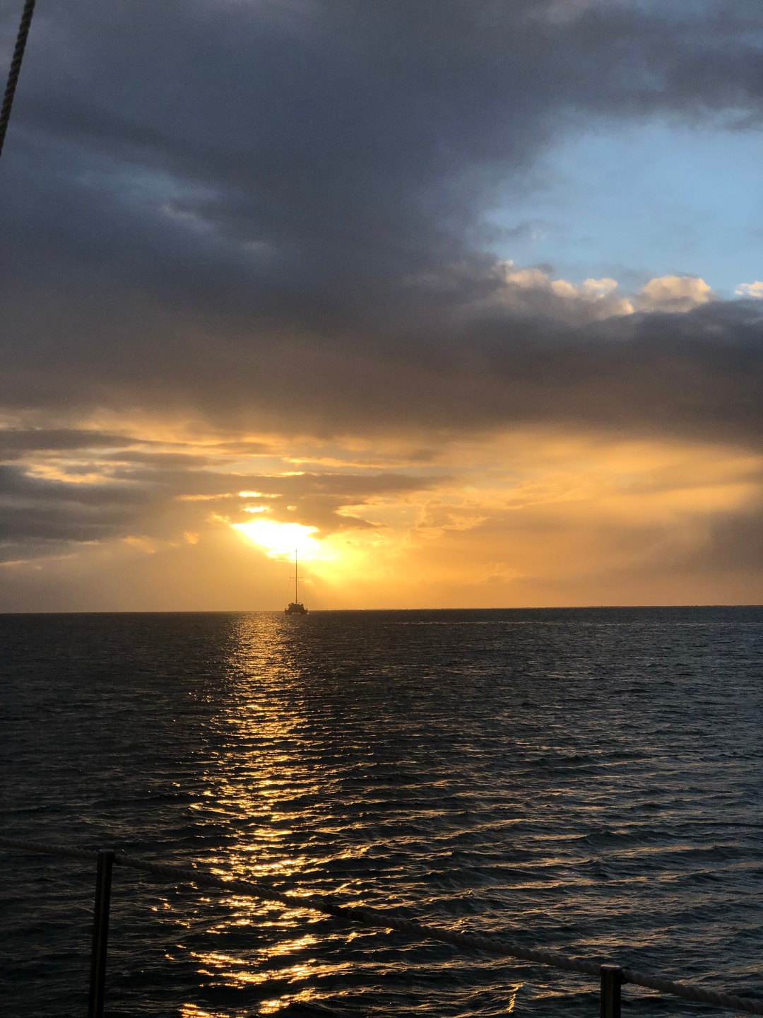 Picture 5: Sunset view from Barbuda featuring the prettiest catamaran I have ever seen