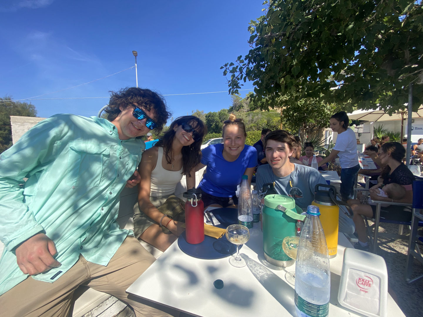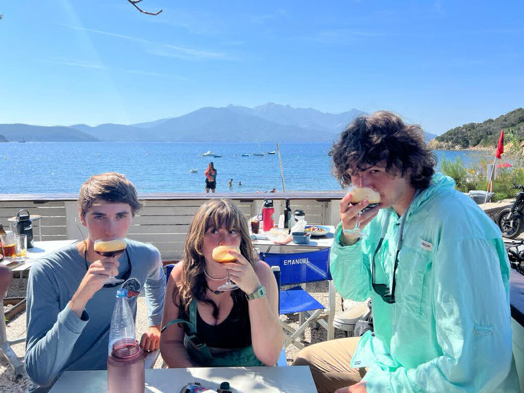 Stick pulled out the drone, which was definitely a nice touch. About two miles back from the overlook, we ate lunch at Emanuel, a cute pizza and coffee shop near the beach. Miles, Gordon, and I had Caf Fro or iced coffee. We gorged ourselves on pizza. On the way back, Chelsea, Liam, and I played the Umbrella game (if you know, you know), and Liam definitely was stressed, haha! At the end of the hike with blistered feet, we calculated that the hike was a total of 11.5 miles! The whole group met Sean back in Portoferrario, where he spent the day with a jelly donut, multiple coffees, and a miniature hike to the place where Napoleon was held in prison!