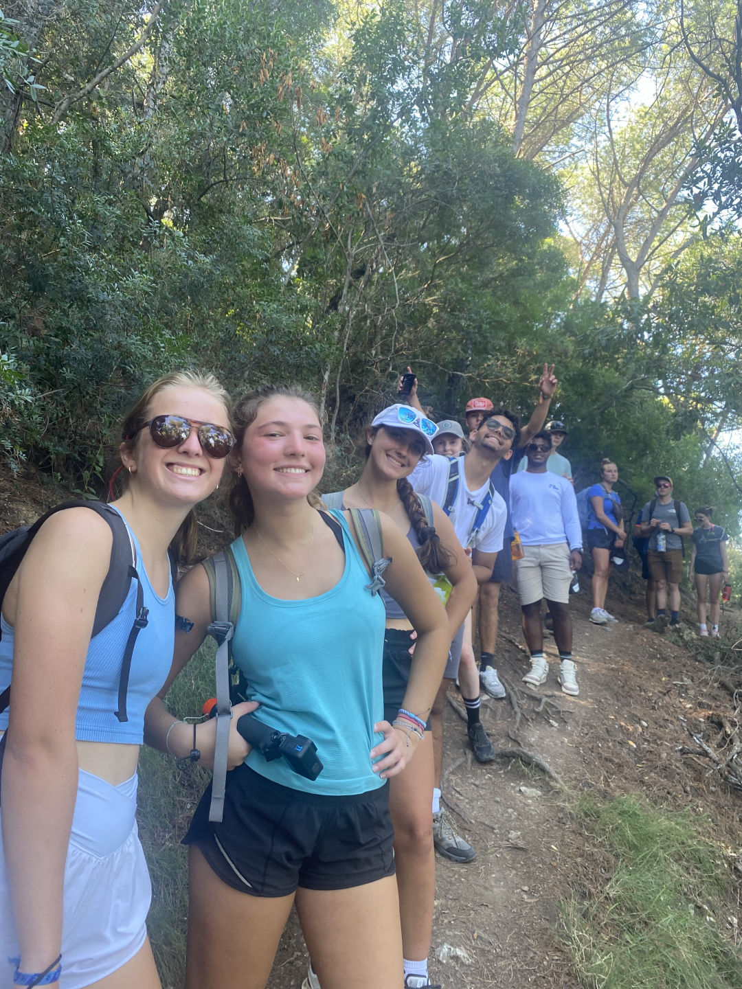 Argo is off to Portoferraio, Elba, early this morning for a much-needed repair to the cutlass barring. We readied the ship and our stomachs for the day, eating homemade frittata with mushrooms, peppers, and spinach. Greta, Del, and Calli started their day off with morning yoga, basking in the early sun rays. Chelsea and I helped lift the anchor as we headed to the port. We had to pack our day packs and overnight bags for surprise! A CAMPING TRIP!!!! This is seamesters first camping trip as we waited for Argo to be right and ready. Mac drove us in the dinghies to land, where it occurred to us that we hadnt set foot on land in 2 days. Once everyone was together, we immediately started our day hike!!