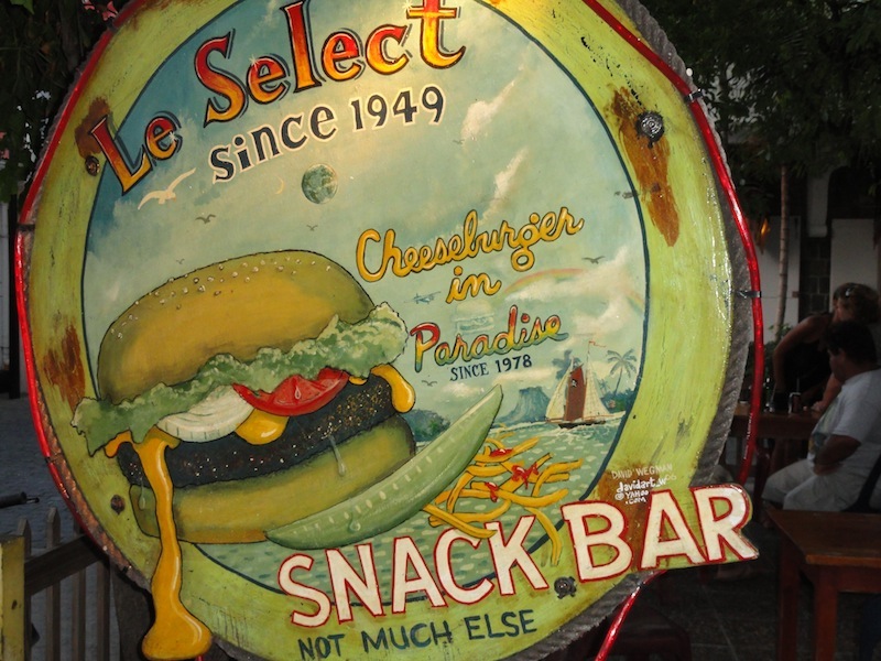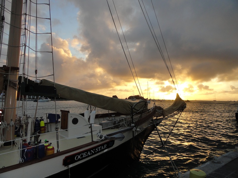 We arrived in St. Barths early in the morning after an exciting night sail from Barbuda. We anchored near the harbor and gave Ostar a nice scrub down before moving her to the dock. With Ocean Star clean and settled starboard-to against the dock (right in front of the Louis Vuitton store, might I add), we enjoyed a few hours of free time in the afternoon. Most of us relaxed onboard and took much-needed naps to recover from the lack of sleep during our night sail; some of us rushed to the showers, and others explored the surrounding streets and shops. After our usual 6 pm Squeeze, we set off to Le Select for dinner. This restaurant inspired Jimmy Buffet to write the song Cheeseburgers in Paradise, so naturally, we ate cheeseburgers (or fish burgers, for some, and fries, of course!) After the meal, we wandered around St. Barths and indulged in plenty of window shopping. Eight of us ended up at La Creperie towards the end of the night. Having crepes for dessert could not have been a better way to end our first day in St. Barths.