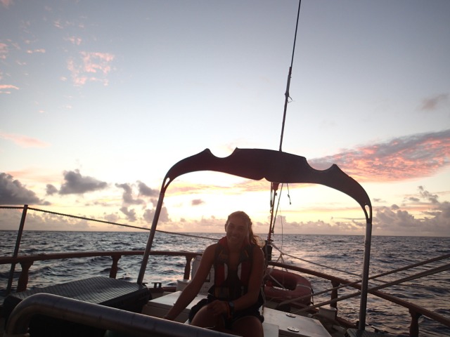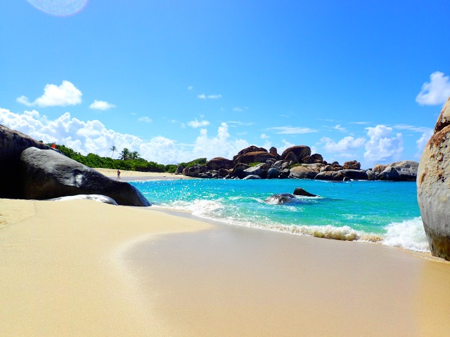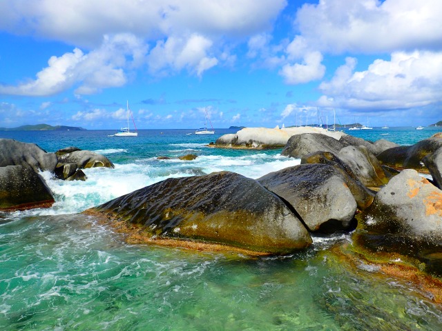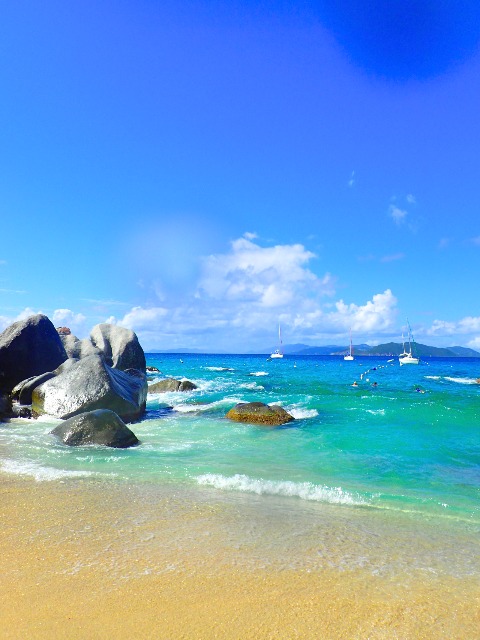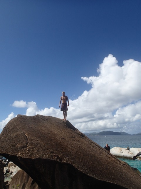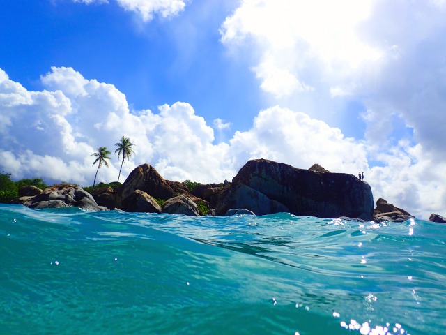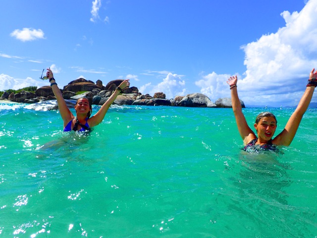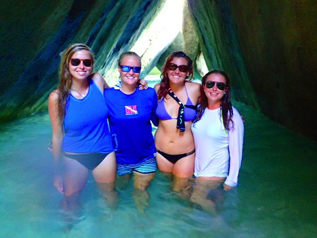 When we started passage last night, the sky was filled with countless stars, more than ever. It was beautiful! Then, our team’s watch was over, and we went to sleep. Six hours later, when it was time for our next watch, I got to see the sunrise. It was amazing. After passage, we arrived in the BVI, meaning we were back home again! We had to do some boat cleaning before going to The Baths. After organizing the deck and down below, we went swimming ashore to play around among boulders, climb and jump from rock to rock, and explore the secret paths. I think I like Devil’s Beach the most. The water is unbelievably clear there.