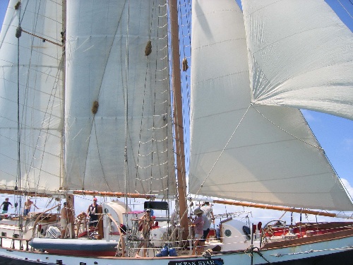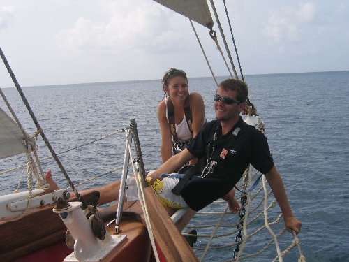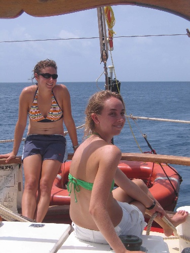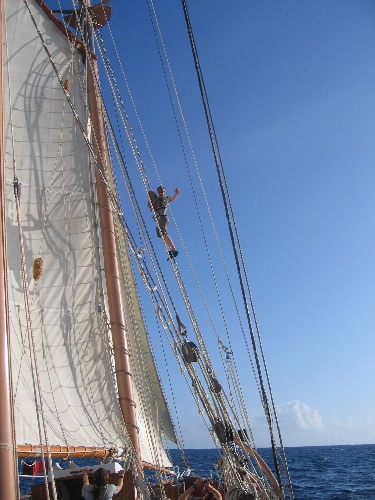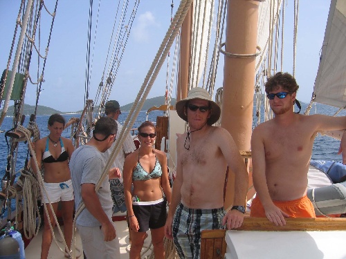 The crew started the morning with a hearty meal of pancakes and fruit. Immediately following breakfast, we loaded our dive gear into the dinghy and headed out for our second open water dive. After about 45 minutes underwater, we surfaced and returned to Ocean Star for another oceanography class, where we discussed the projects that we would be doing. Lunch was enjoyed by the crew after a long but enjoyable morning. As the crew finished eating, the excitement seemed to grow on deck. The afternoon plan was to hoist the sails and finally see Ocean Star as she was meant to be. We pulled up the anchor and tacked and jibed back and forth along the shore of Virgin Gorda, practicing using the lines and performing various maneuvers. We had many passing boats radio us to say that Ocean Star looked amazing! On the way back to Mountain Point, we had a Man-Over-Board drill and a talk about safety. Dinner followed, dropping the anchor, and our first MTE class took up the rest of the evening: another fun-filled, non-stop day aboard this awesome boat.