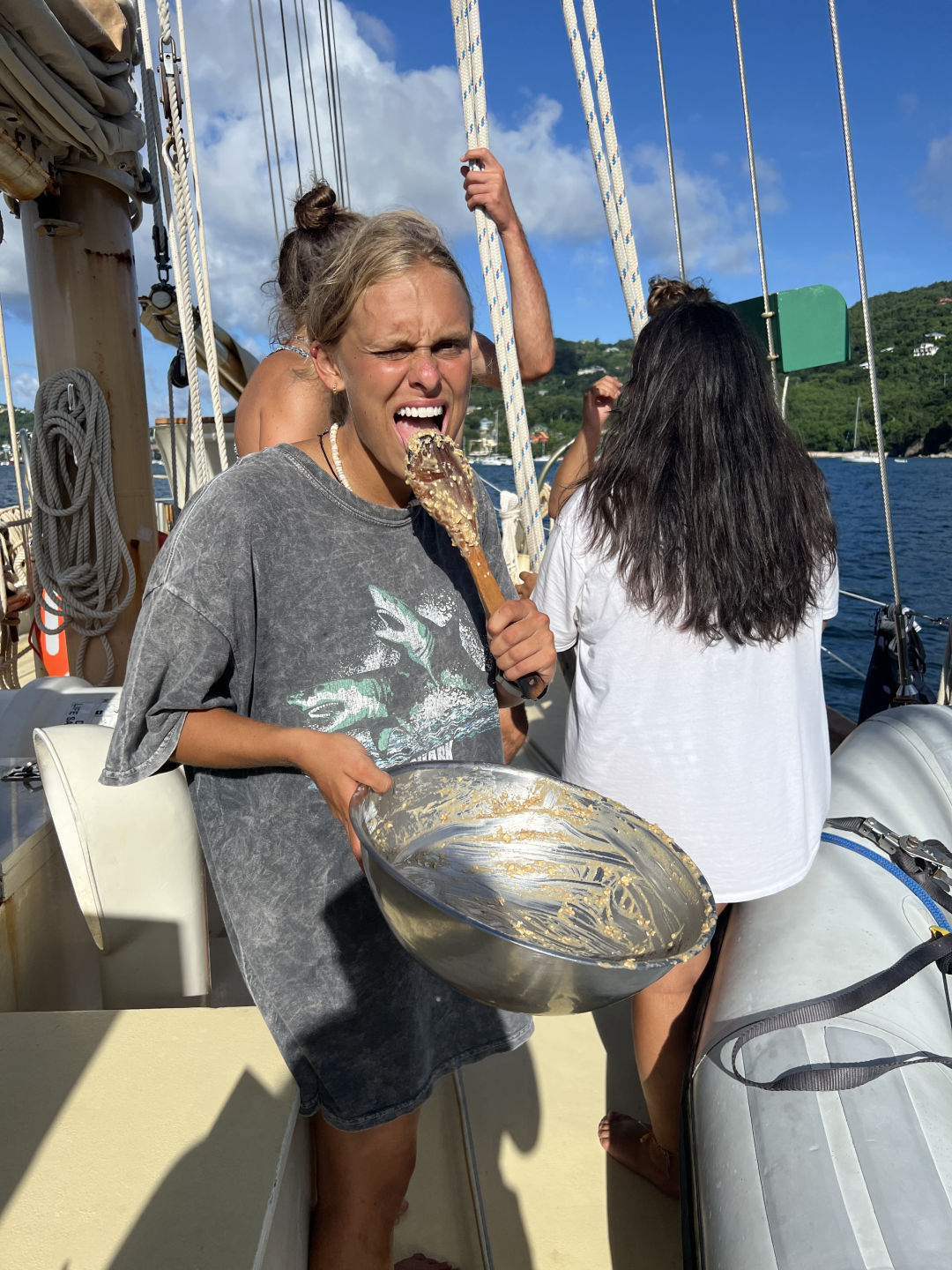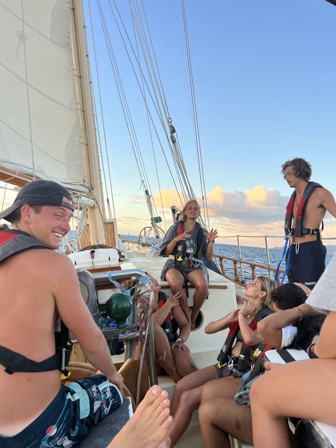 Lunchtime! Quinoa and salad bowls were absolutely phenomenal and exactly the energy boost we all needed for passage prep. Even though I’m really nervous to lead everything, everyone is really supportive and ready to help out. I learned so much and feel more confident in my seamanship capabilities than I had before. Before we know it, we’re ready for passage! We get the sails up, and we’re underway by 4:00 pm. Watch team 2 kicks us off, and we have a delicious stir fry dinner and oatmeal chocolate cookies under a starry sky.