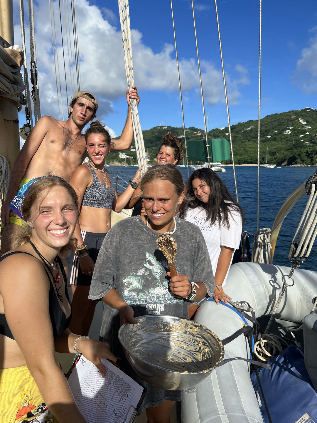 We begin our story on a schooner anchored in Admiralty Bay. I wake up from a surprisingly uneventful night in the hammock, and every one is somehow already awake. I’ve slowly found myself becoming a morning person, which is something I never thought I’d say. After an easy wake-up, we help ourselves to a lovely breakfast of Heather’s carrot spice bread. I always get excited about Heather’s breakfasts, and the galley always smells amazing the night before. We head down to the saloon for an OCE class. Today is a presentation day for our literature review assignments, and a bunch of us get to show everyone what we’ve learned about our topics. I learned a lot about so many topics, from sea turtles to coastal erosion to ocean acidification and many more.