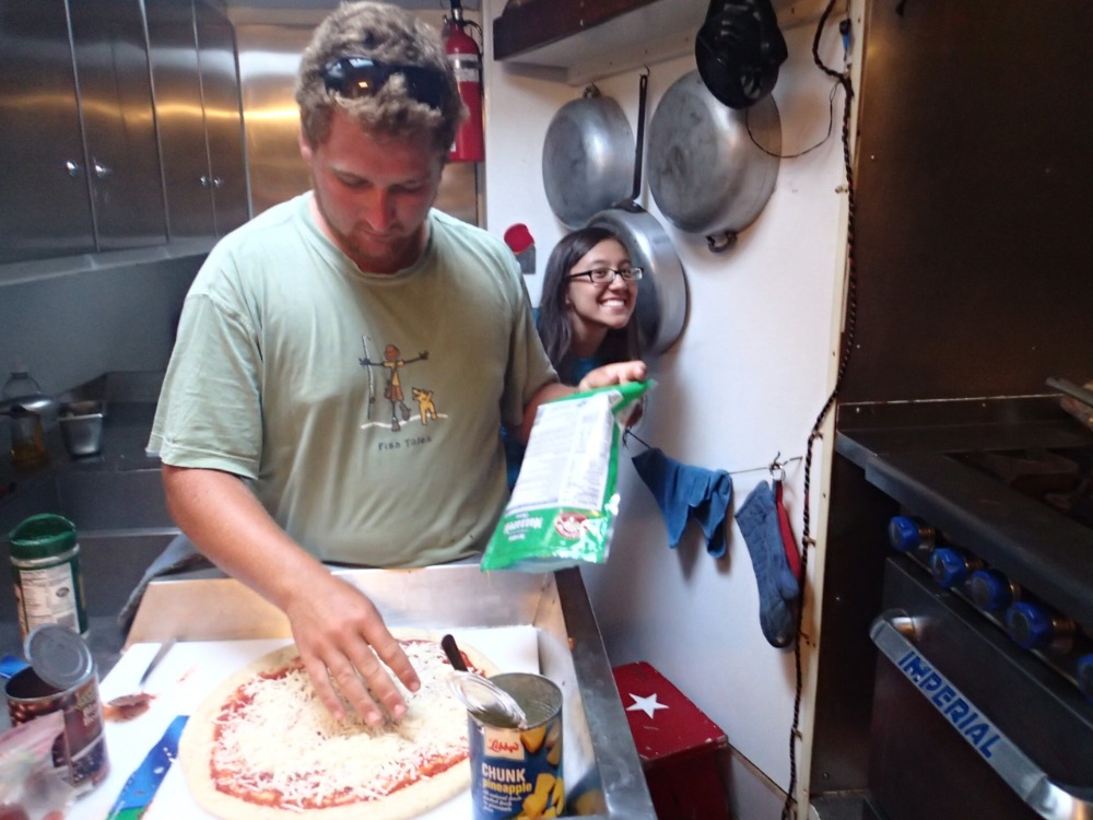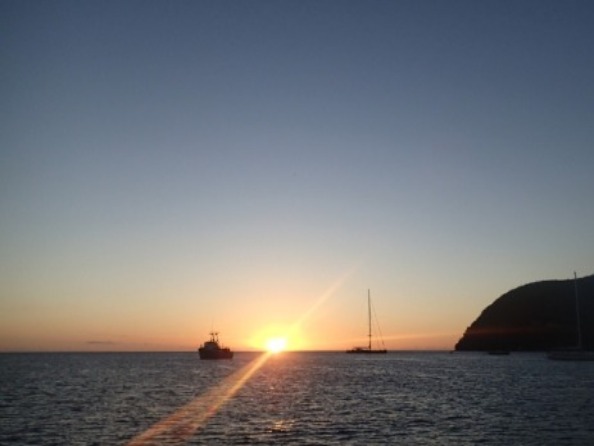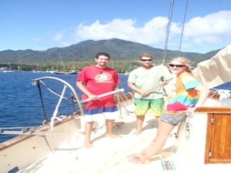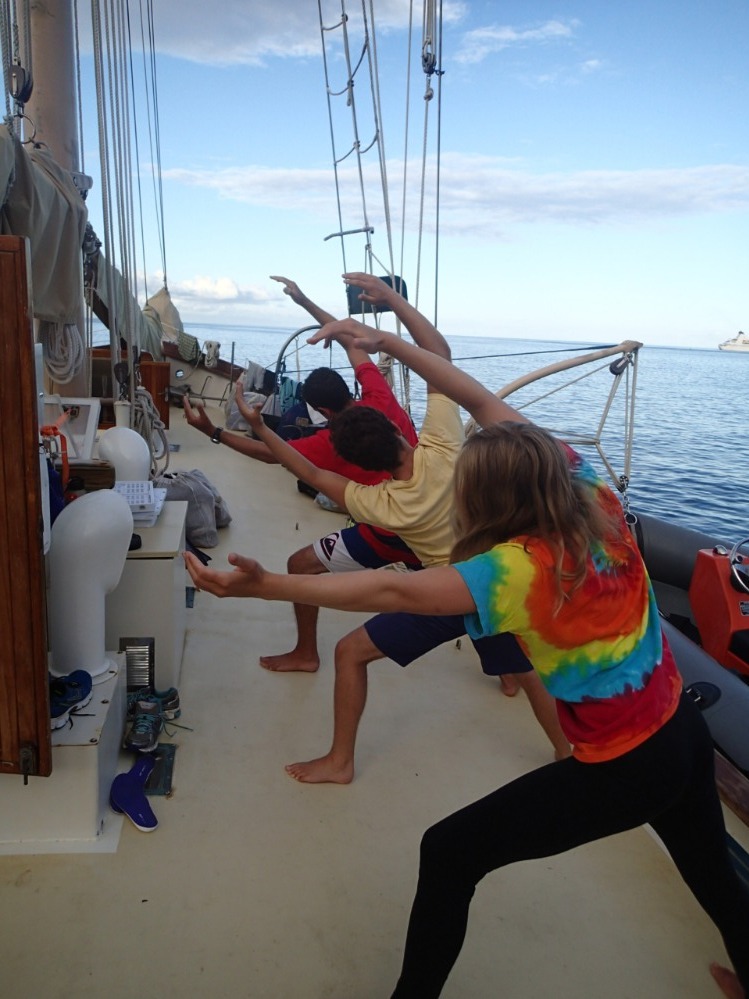 The day started with some yoga to loosen up those sore muscles that we mistreated badly two days ago during the Boiling Lake hike. After the morning exercise and breakfast, we were ready for quite a load of Oceanography classes. We had a date with an evening quiz on Physical Oceanography, which asked for a long review class in the morning. Once done with class and after playing the obligatory Tetris in the galley to find space for all the provisions Monika and Cayley had bought for us, we made our way to a different part of Dominica, namely Portsmouth, a quiet little town at Prince Rupert Bay. Here, there was time for studying, either onshore or onboard, as well as for one of the first practices on backflips. Some also went for a dinghy ride to enjoy some boat watching and also to gather some nice pictures of the beautiful Ocean Star that one of our harbor neighbors had taken a few days before while we were underway with all the sails up. For dinner, there was brain food: Self-made pizza, thanks to our head chef of the day, Tucker, and brownies, thanks to Dana. Hopefully, that helped with the quiz, which was scheduled for shortly after. In addition, we had an introduction to the characteristics of estuaries since tomorrow we will be touring the Indian River, a great opportunity for observing the dynamics of the confluence between sea and land waters.