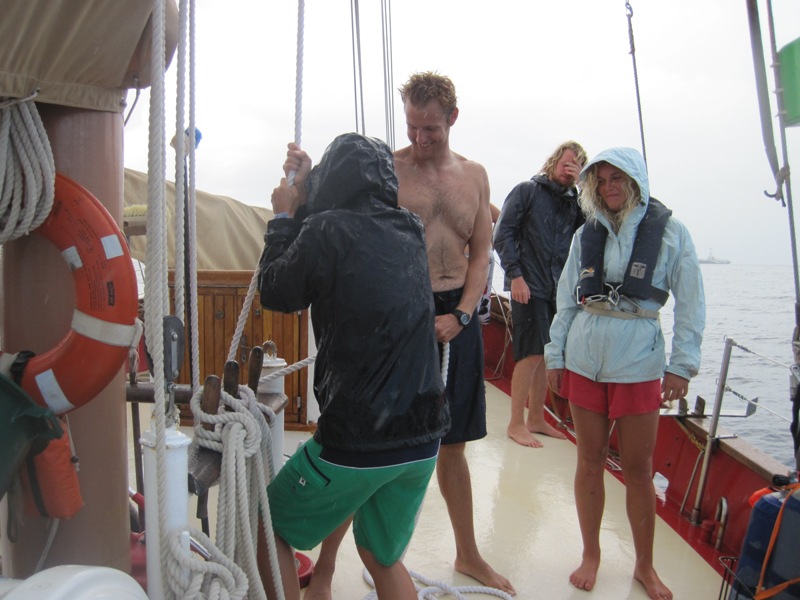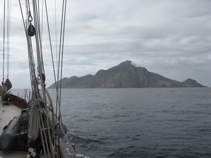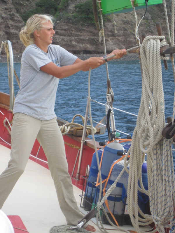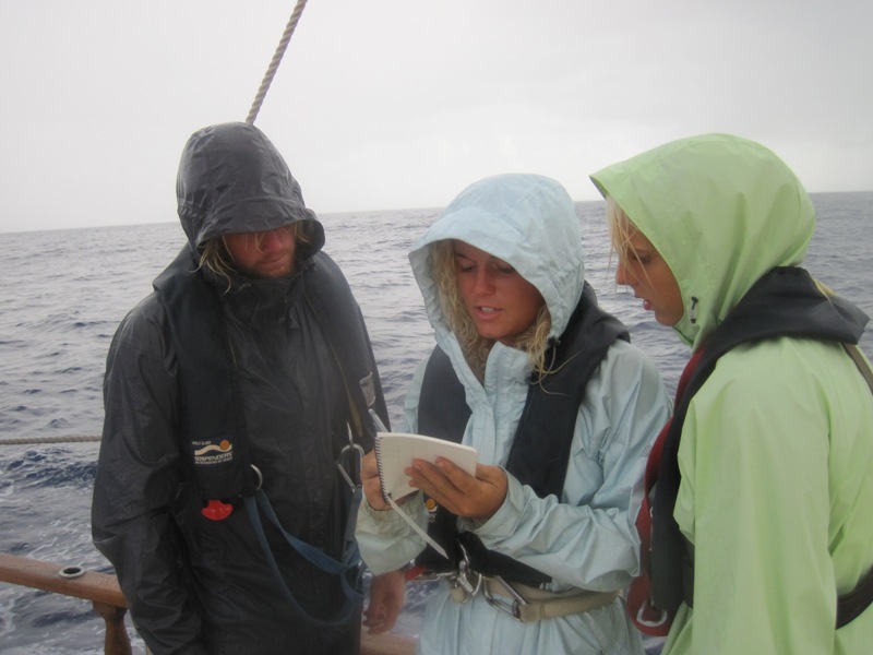 We all woke up this morning in good moods. We had the wonderful smell of double chocolate pancakes on our noses. Yum. After breakfast, it was time to do science diving. Two groups had to go out and get sediment cores to help Chantal with her research. People that were not going on the dives had time to do work and relax. If you are unaware, the end of the trip is coming, and school is ending. That means tests and papers. OH. NO. After lunch, we began our passage to Saba. We had planned to sail, but the wind was dead. It was raining. What fun. Actually, it was fun because our GPS was off, so we took three-point fixes in order to determine our location.