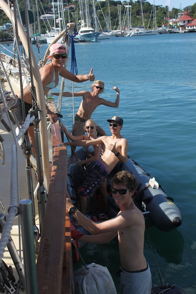 Ah, Finally, a chance to stretch our legs. We all enjoyed getting into Grenada early and took full advantage of it by exploring St. George and its historic-looking scenery. We didn’t all rush off too fast, however, as we started our morning by giving Ocean Star the very thorough cleaning that she deserves. We not only scrubbed and polished the decks and down below but gave the topsides (everything out of the water on the hull of the boat) a good scrub as well. After a very informative marine biology lecture and friendly plankton-creating competition, we all struck out on land to explore the sights of St. George, Grenada. Some highlights include hiking up to an old fort that gave a gorgeous overlook of the town, exploring the Wednesday afternoon spice market, and finding special nuts that create fire. Never fear. However, these nuts don’t spontaneously combust but become extremely hot when rubbed against a rock. It is so hot, in fact, that one can create fire by touching a piece of paper against it; later tonight, there will be time to relax as the entire crew enjoys a night out. The day proved to be very hot without the fresh ocean breeze as we send greetings and wish everyone well who is back in the frigid north!