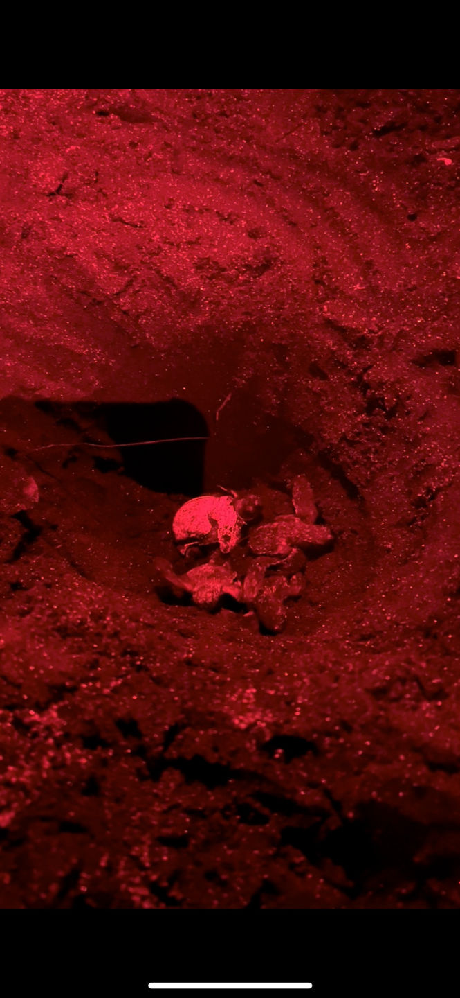 Another action-packed day on Ostar! This morning, the crew got to sleep in an hour after a late night, getting back on board past 2300 last night, but for good reason BABY TURTLES! We got to visit one of the turtle nesting beaches in Nevis and help collect data on the success rate of hatchlings from a nest of hawksbill sea turtles. Our data collection included excavating a nest that had hatched the previous day, finding four baby turtles, and seeing them make their way out to sea after many attempts getting picked up and pushed back by the waves. (most of their sibling had made it out of the nest earlier). We also got to see a massive female digging a nest.