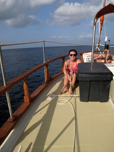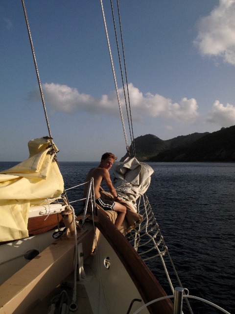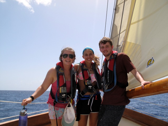After our usual wake-up at 7:00 this morning, we quickly began passage prep. After completing passage prep and enjoying a somewhat late breakfast, we finally set sail for what will be our longest passage on this voyage! We pulled the anchor up around 9:00 and finished putting up the jib about an hour after leaving Montserrat. We have been rotating through our watch teams every three hours, giving us 3 hours on and 6 hours off. Over the course of the day, we have been switching between fully sailing (no motor) and having our sails up but the motor on as well. Passage prep went fairly smoothly this morning, and it seems we are all getting to know Oceanstar better and better each day. Though putting the sails up took a bit longer to complete than prior efforts, I think we had everyone, but the chefs are helping throughout the process, so that was really good. The chefs did a great job dealing with some minor setbacks that pushed our eating times back a bit and put out three tasty meals. We finished the night with some delicious chili and cornbread as Watch Team 1 took over, and most of us headed to bed to get some rest before waking up at different hours for watch. We will continue with our watch team rotation for the next couple of days until we arrive in yet another new county, Grenada!