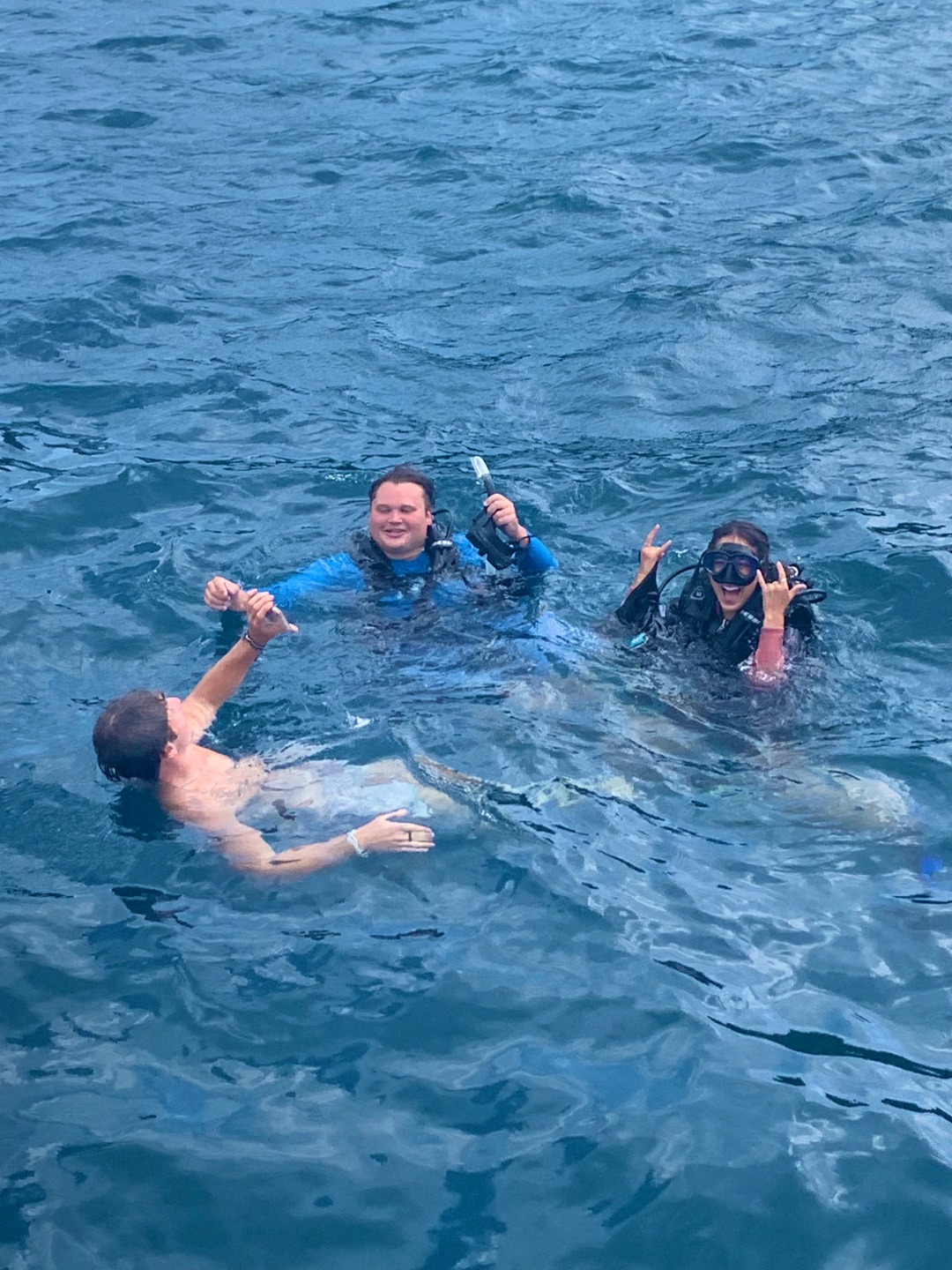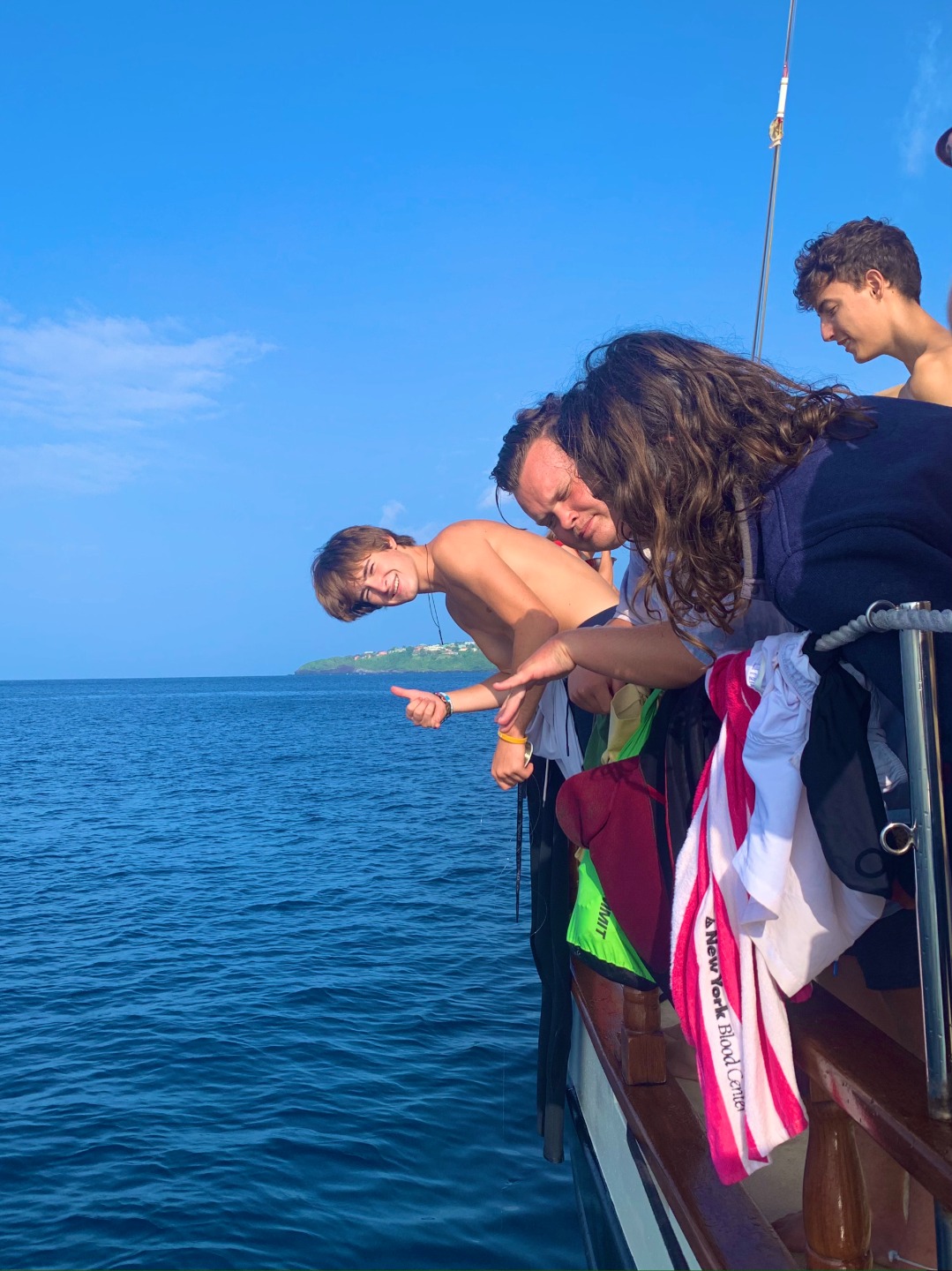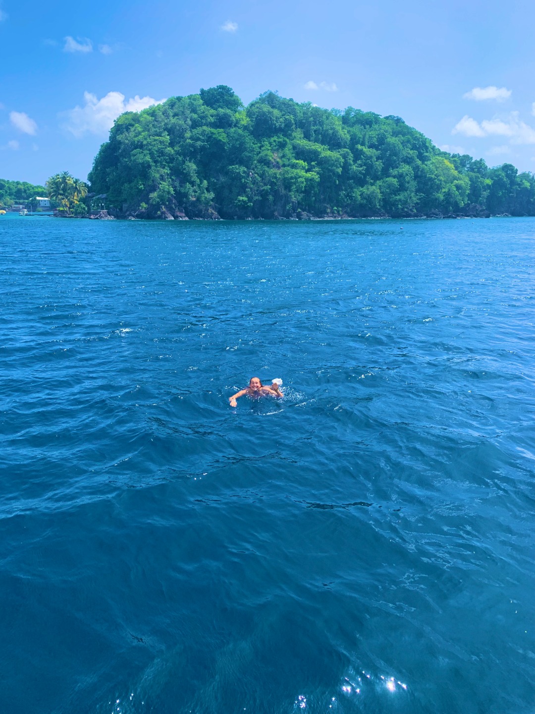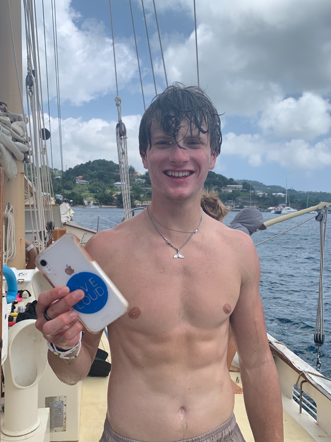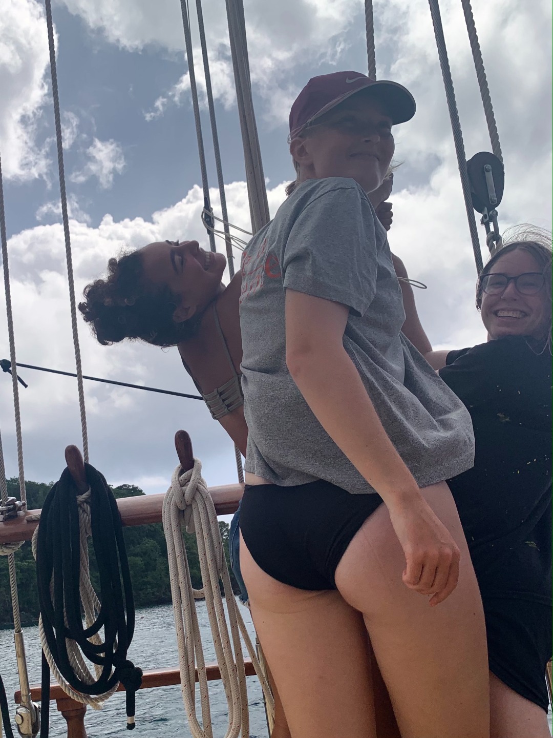 The morning started a little rough when The Mountain woke me up at 7:05 to remind me that I was the skipper today – meaning I was supposed to wake everyone up at 7:00…oops, jejje! HOWEVER, you know what they say: when you are at the bottom, the only way is up!! And the rest of the day just got better and better! After a hardy breakfast (yogurt and granola), we had a Seamanship exam and a bunch of epic moments: Quinn fished and released a little Blue Runner (learned that in marine bio) that we called Jerri (:, Sam found Logan’s phone (that fell into the ocean yesterday lol), Steph, on the same dive, found a bunch of silverware we had lost, and Alexis found her Billy Joel t-shirt that had fallen into the ocean weeks ago!! After this awesome treasure hunt, we dedicated our morning to passage prep and sail raising. When we started this program 40 days ago, passage prep and sail raising felt kind of tedious, but today, oh man! We killed it, and we had so much fun! After the dinghies made it onboard safely, we broke into teams to take the water out of the bilges, prepare the sails, and put away our dive gear. Off we went! Waving goodbye to St. Vincent and our much beloved Bequia.
