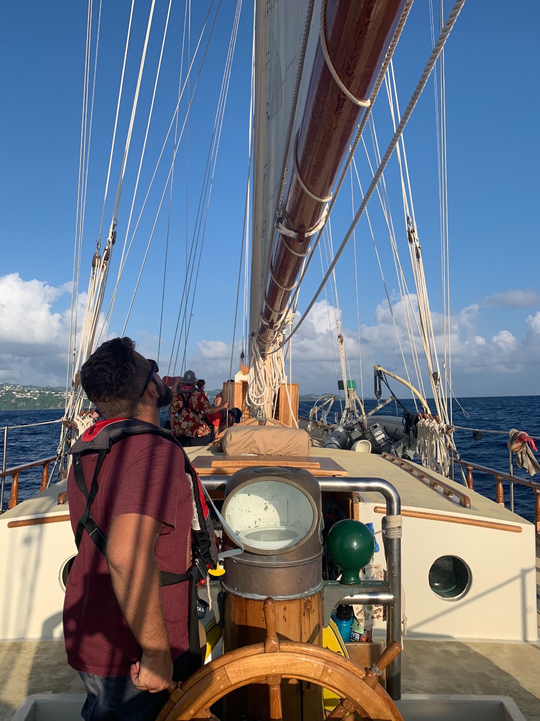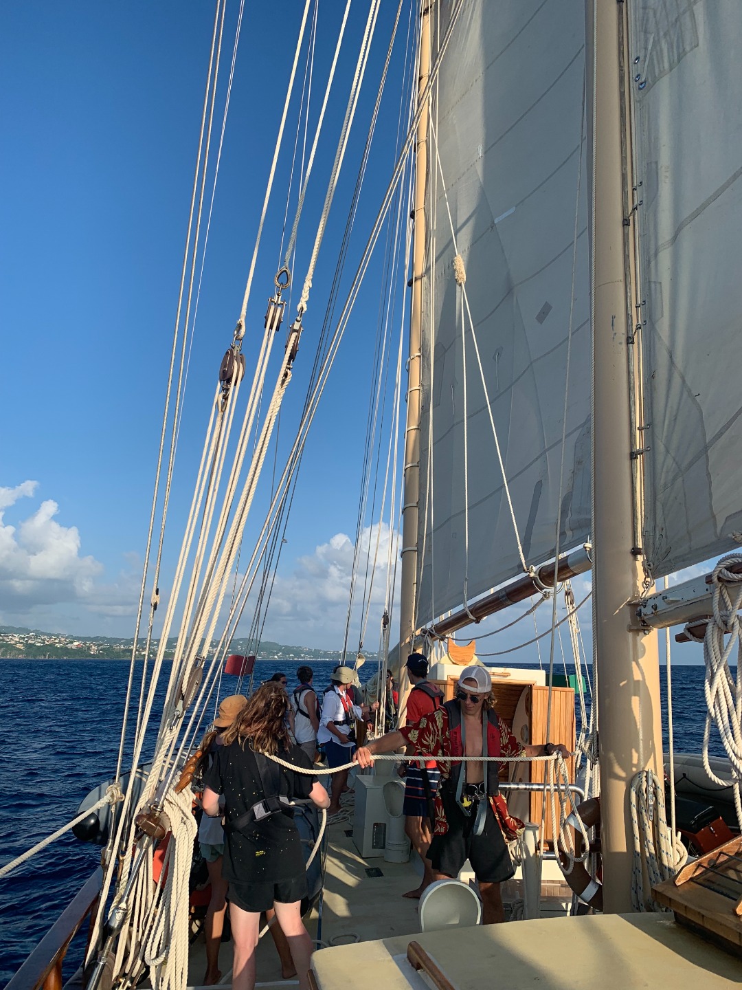 Soon after being out to sea, our three sail teams (led by Will, Logang, and Sophie) raised the sails, and we were officially on our way to St. Lucia, aka my island (: From here watch team 1 took the helm and sailed us through BLT wraps and calm seas. In the meantime, people finished their Marine Biology essay before starting their watch.