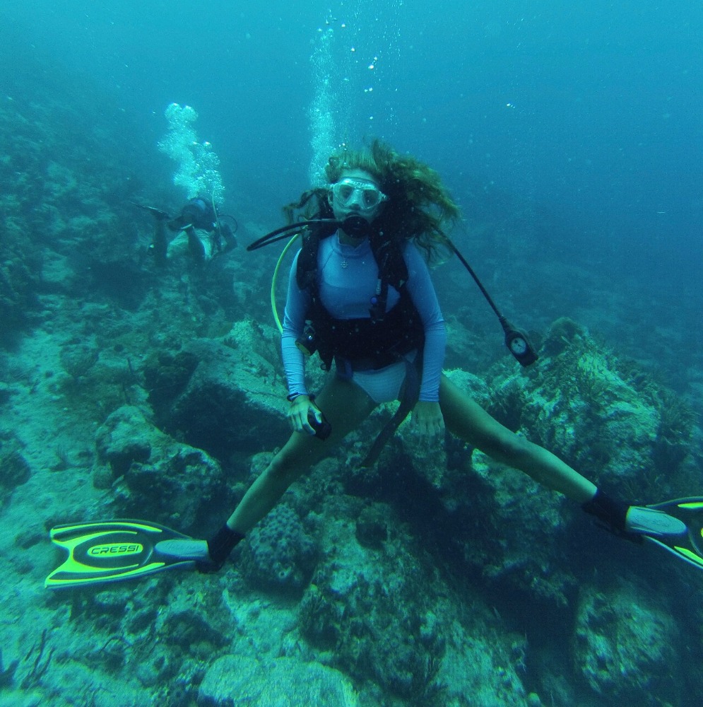 The natural beauty that bounced off the reefs pulsated with a life only known to those who travel beneath the waves. The colors and true diversity of life were something many of the student crew had never experienced before. It would prove to be a day of firsts. There were sightings of nurse sharks and colorful Sergeant Majors who danced over our masks as we swam by their patches of newly laid eggs. There were giant blue lobsters crawling in and out of their caves, playing peekaboo with us as we swam by. The corals were equally as vibrant and colorful, with many brain coral colonies and various sea fans freckling the seafloor as far as our masks could see.