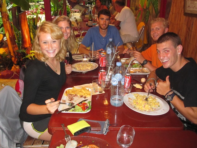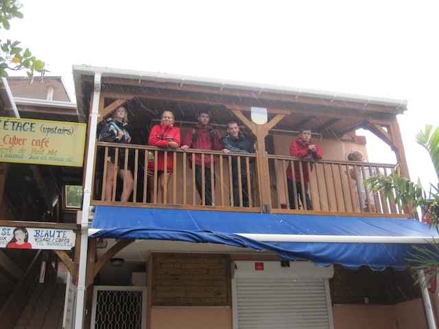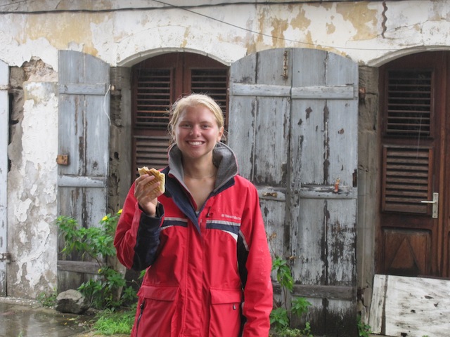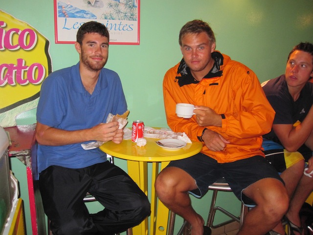Un joure incroyable! Which means What an incredible day! in French, and quite an incredible day it was. We explored the French islands known as The Saints, or to the French, Les Saints. We awoke to a pretty vicious downpour, but that did little to damper our spirits. The whole crew was eager and ready to explore this cozy little island. After our wet dinghy rides to the dock, the crew split into groups and went exploring. Some went to a little cafe for baguettes and croissants; some went on the hunt for souvenirs, while others just roamed the island. The locals were all friendly, except that very few spoke a single word of English, which made asking for directions a tad difficult. After some amazing pastries, a great lunch in a nice French restaurant, fiery bananas for dessert, and my discovery of a half-liter glass bottle of Coke, nobody was hungry for dinner! But it was all worth it. Tonight, we have a Marine Biology class, and tomorrow, we will continue to explore The Saints along with something I’ve been waiting for since the beginning of the trip: a night dive! So that’s all for today. everybody on board is excited to see what kind of adventures this trip holds for us tomorrow, so we go! Oh, When The Saints Come Marching In