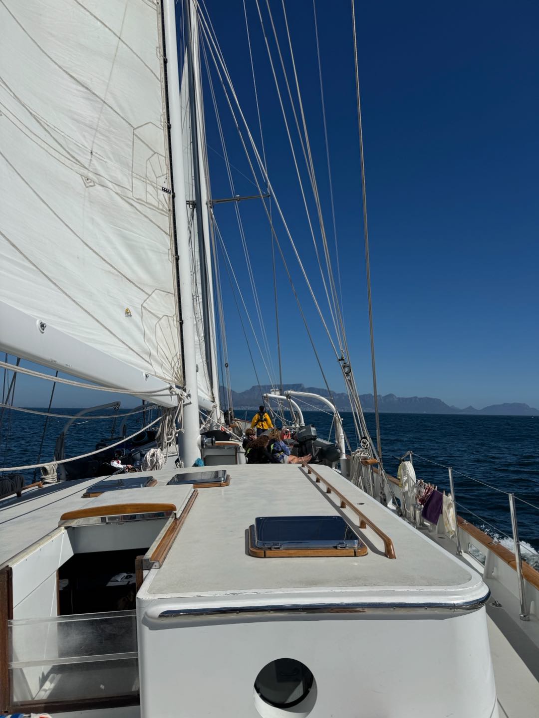 Good morning, good afternoon, and good evening! Weve had a spectacular day here on Vela, everyone getting some last-minute time to grab snacks and make calls, and now were underway to St. Helena! We have some awesome wind leaving Cape Town and have turned off our engine to start our trip. Everyone is super excited to be underway, and vibes have been high. Stay tuned for more!