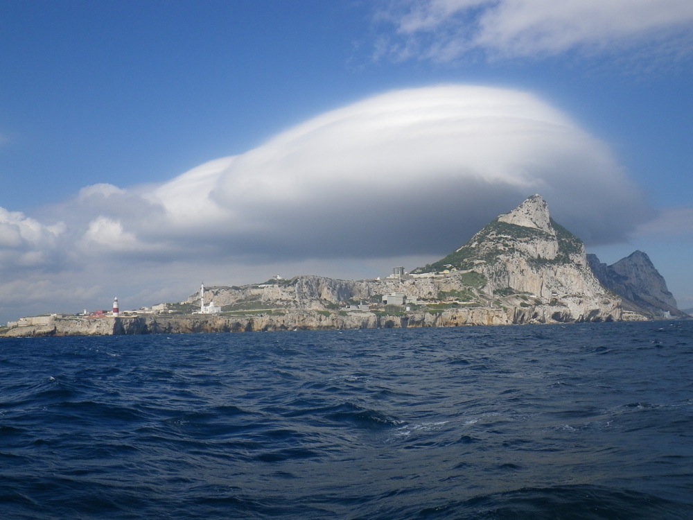 This morning, we said goodbye to Genevieve and left Malaga at 4:30 am. Casey, Abra, and Garrette made a delicious coffee cake and banana bread. As we approached Gibraltar, a protruding rock skyrocketed, dwarfing the city below. A giant flying saucer-shaped cloud sat hovering above the rock. We learned it was a lenticular cloud caused by local geography and a combination of warm and cold air. The sail was short, and we had a couple of classes to help occupy the voyage. We arrived at Gibraltar mid-afternoon but docked in Spain because it was cheaper and easier.