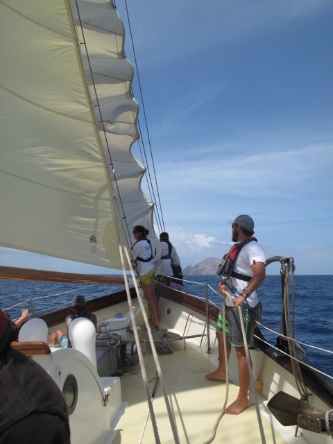 The day began with a running start. We were told if we got ready to sail sooner, we would be able to anchor at Dragon Island for lunch and a little exploring. All sails were raised, and we were underway to Dominica by 9:30. We didn’t make it to Dragon Island (Also known as Redonda) in time for lunch, but we did go exploring. The island is uninhabited and is filled with nesting grounds for the birds. It was basically a giant rock. It was fun climbing the rocks, doing our best not to slip, exploring the small cave, and snorkeling back to the good old Ocean Star. The rest of the night and into the morning, we will sail to Dominica. So far, we have sailed pretty smoothly. The waves are calm, and the wind isn’t too strong. So far, no one has been seasick! So we have been taking turns sailing, studying, and sleeping. Dominica, here we come!