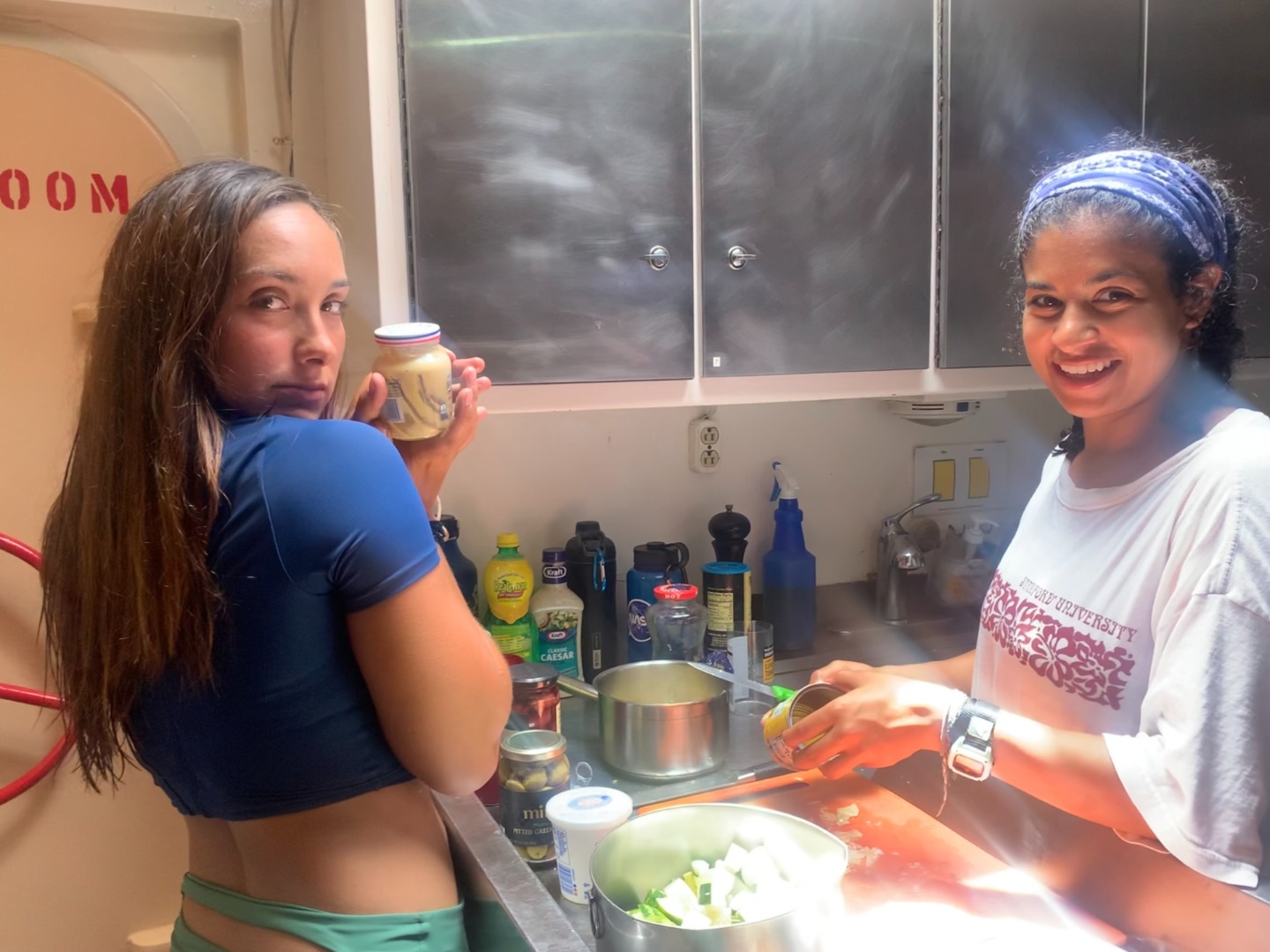 2. Maria and Jackie serving looks and food in the galley