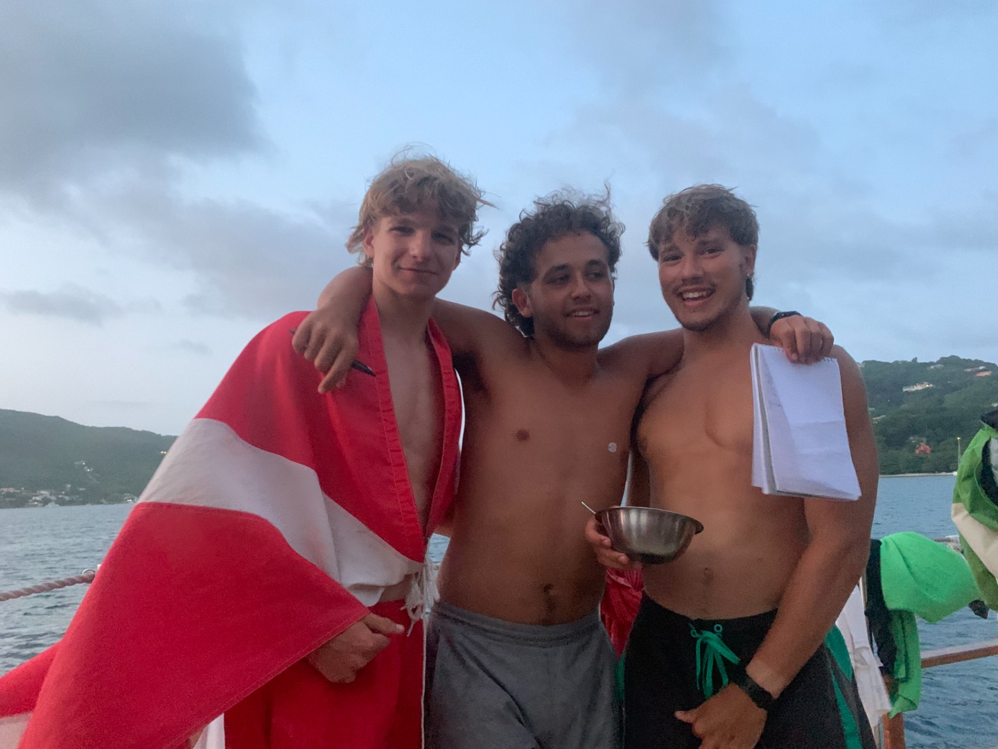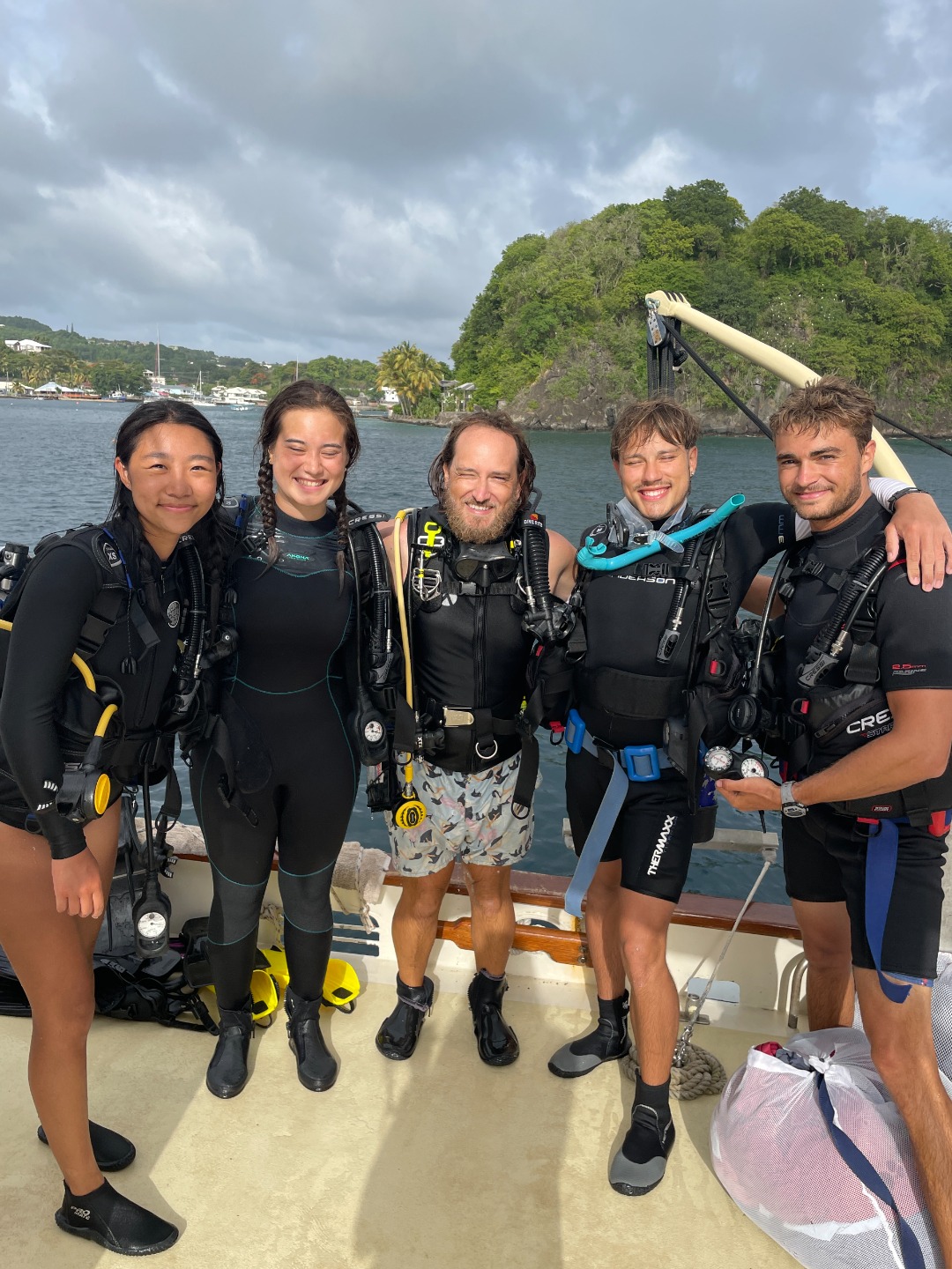 A St. Vincent sunrise was obscured by light rain in the early morning of July 23rd. The crew of Ocean Star awoke still weary from the fun night of board games that kept everyone awake well into the night. Everyones drying laundry on the lifelines were unfortunately resoaked by the rain, but the delicious french toast made by our wonderful chefs helped cheer everyone up! After breakfast, the first dive group prepared to complete their Underwater Navigation dive for advanced open water while the second group watched the extremely entertaining emergency first responder videos. The first group’s dive went well, and everyone managed to not get lost! The same cannot be said for the second dive group, in which compasses were apparently ‘not functioning correctly.