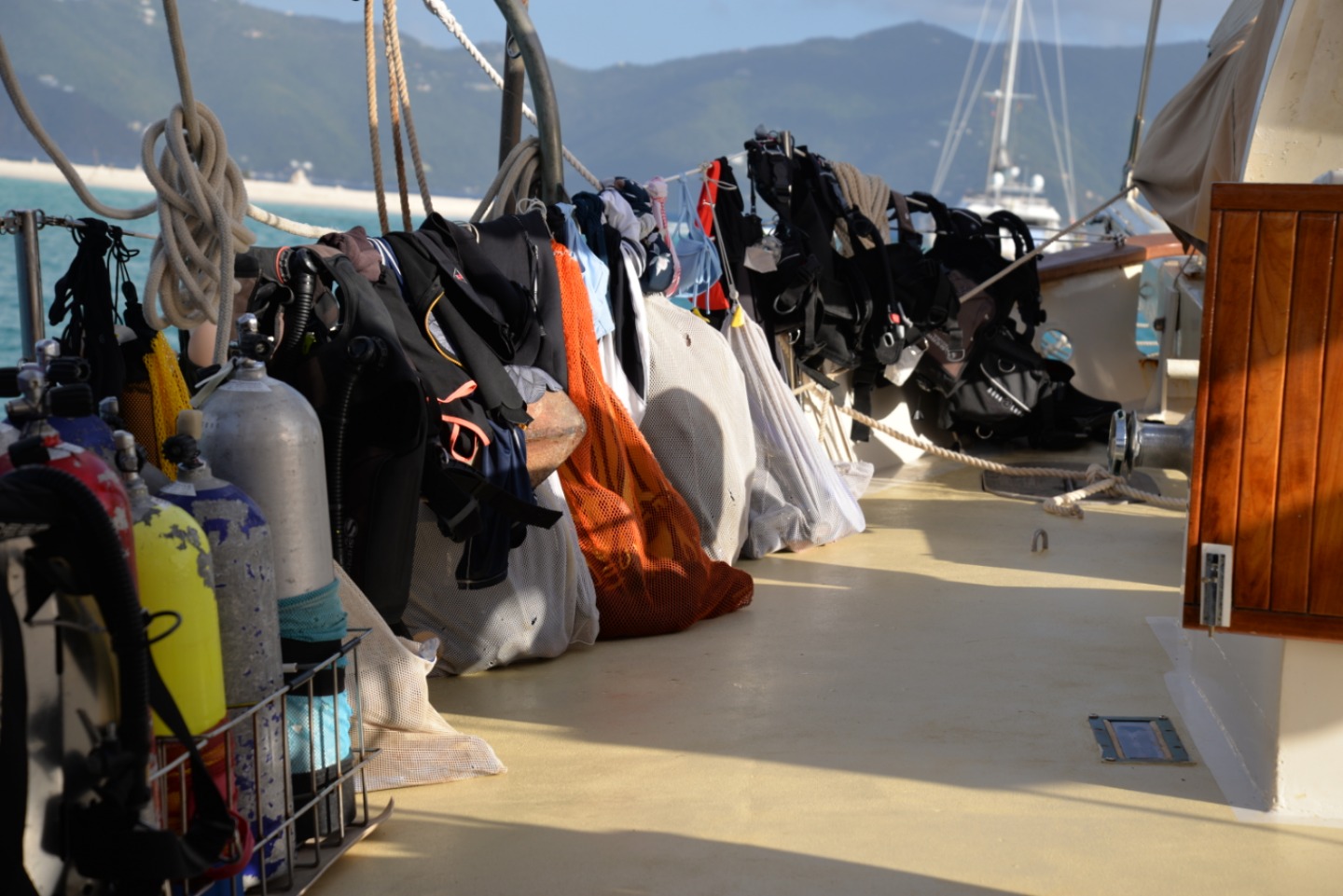Our first dive of the advanced open water course happened in the morning on a little tug wreck just outside of Admiralty Bay. A favorite of Sea|Mester students and staff throughout the years, the little tug is home to all kinds of marine life. The tug sits in about 60ft of water, and today the viz was phenomenal; the whole thing was easily spotted from the surface in the bright morning sunshine.