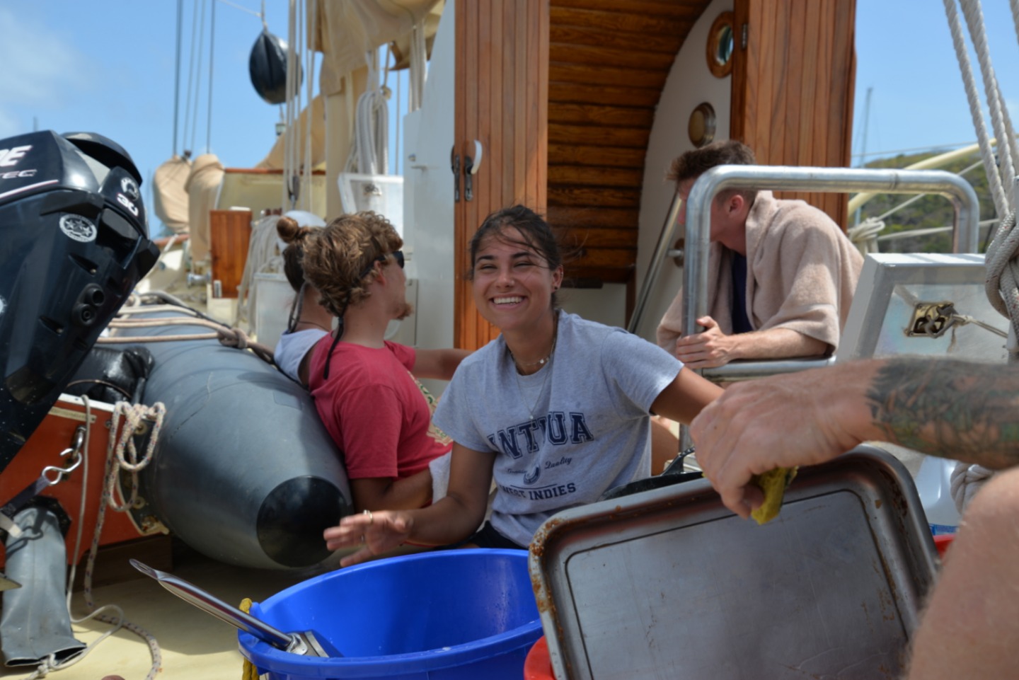 After a delicious lunch prepared by Alex and Matt (with only a small mishap involving a lid to the black pepper shaker that wasn’t quite screwed on all the way), the students dinghied ashore for a quick jaunt ashore for ice cream and wifi. Alex had Oceanography at 3 pm during which students were back aboard to start learning about the Coriolis Effect. Shower time and a delicious West Indian curry dinner followed. Now students are headed down below to study for their upcoming midterms. Hard to believe it’s already that time — and crazy to think that we’ll be past the halfway mark when I write my next skipper’s blog.