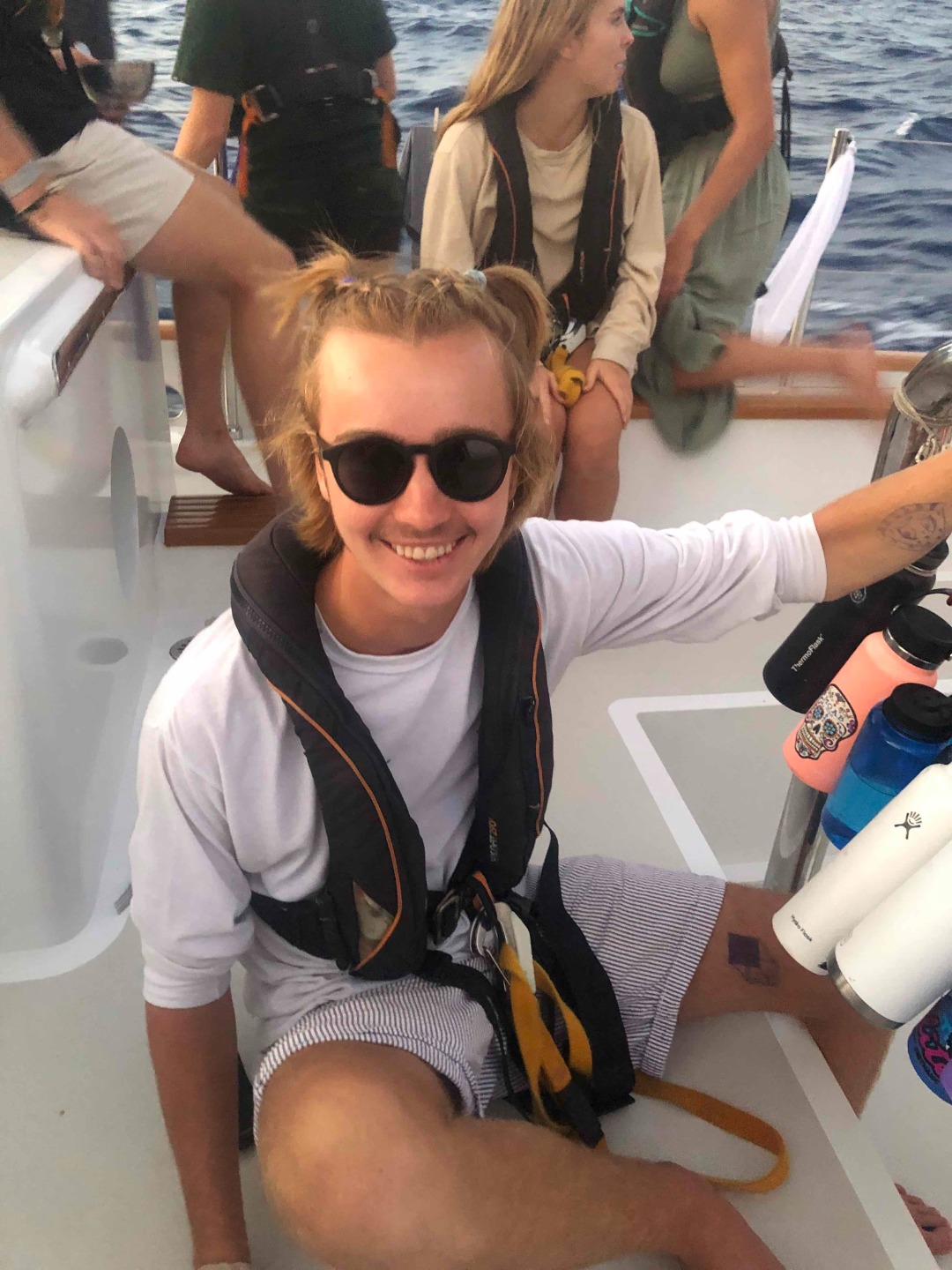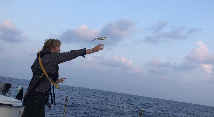 During passage life, where minutes blur into hours and hours blur into days, in the end, its about finding the small things that make each day different, small moments of joythe sunset. A 4:30 am foot massage. A fresh banana. Going back to sleep after night watch. (And sometimes, if the only joy to be found in a day is that at the end of it, we are one-day closer, thats alright too.) Those moments of joy, whether small or large, remind us not only that time is passing but that every day is a new adventure. Every day there are thousands of little instances that have the possibility to be amazing. Every day there are countless new things to see, to learn, to experience. And this passage is not only about crossing the Atlantic but about seeking out and embracing those moments of learning, of adventure. Its about sitting on the roof of the chart house talking with Dylan about birds. Its about learning how to use the sextant and then spending the next 30 minutes doing calculations with Garret to make sense of the sextant reading. Its about stringing together all of the myriad snippets of conversations shared with each of the other crewmates to understand the complex, unique, wonderful people they are.
