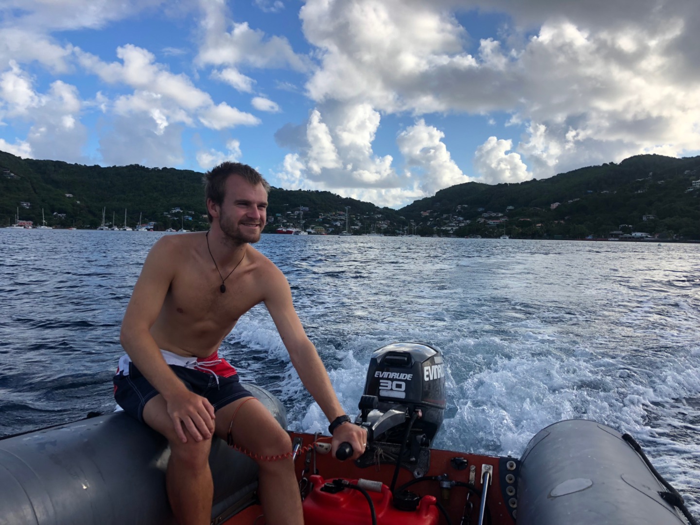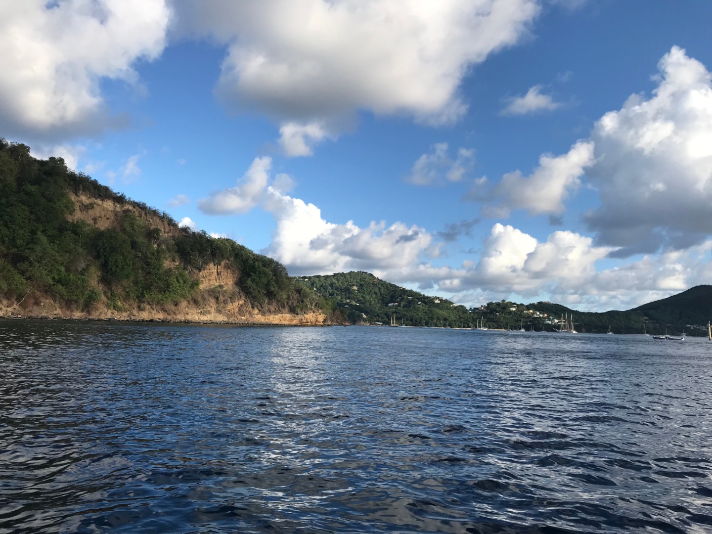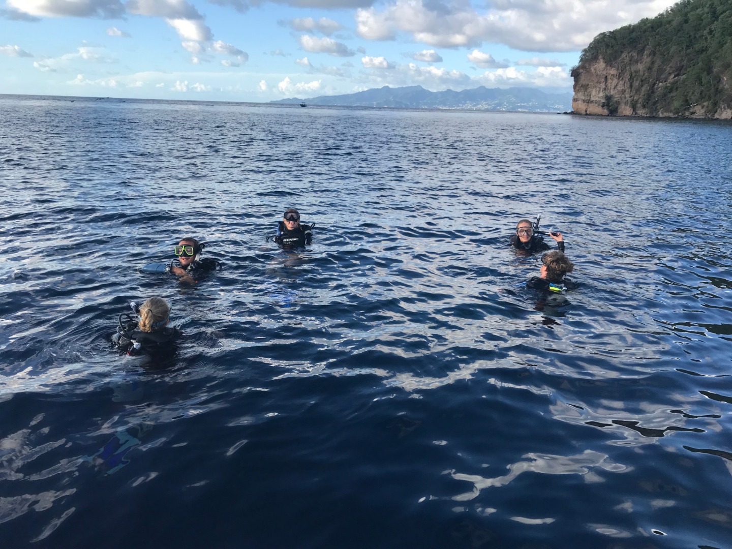 Pictured: Ocean Star in Port Elizabeth, Bequia; Miranda and Joseph working on dinghy school; Josh, Kennedy, Joseph, Ridge, and Matthew in the dishy pit; tanks getting pumped in preparation for diving; surface views during the afternoon dive; family dinner.