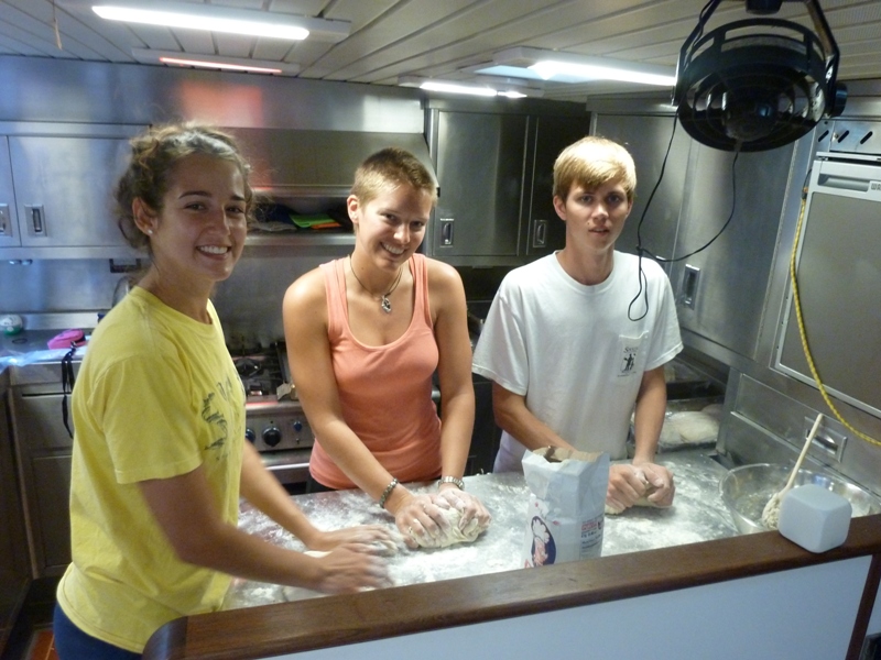 Today marks the first complete turn of the job wheel. It is a significant moment for the crew, as it signifies that each and every one of us has completed all 26 jobs onboard, from cooking all three meals in a day to launching the dinghies to cleaning the heads. Without all those hands, there is no way Argo would look as beautiful as she does, let alone travel to exotic destinations around the globe. Today, the destination at hand was the small, quiet bay of Andrixtol. Situated on the southwest corner of Mallorca, the crystal clear waters of the bay are surrounded by stunning rocky cliffs that turn a brilliant orange during sunrise and sunset. It was a busy day for the crew, particularly the chefs, who began making dinner preparations during breakfast prep with the rolling out of freshly made pizza dough. The focal point of the day was diving. The Open Water divers submerged for their second to last training dive while the Rescue divers kicked off their training. Then, to top it off, the Advanced Open Water divers, in a few minutes, will be enjoying their first-night dive of the trip under an almost full moon.