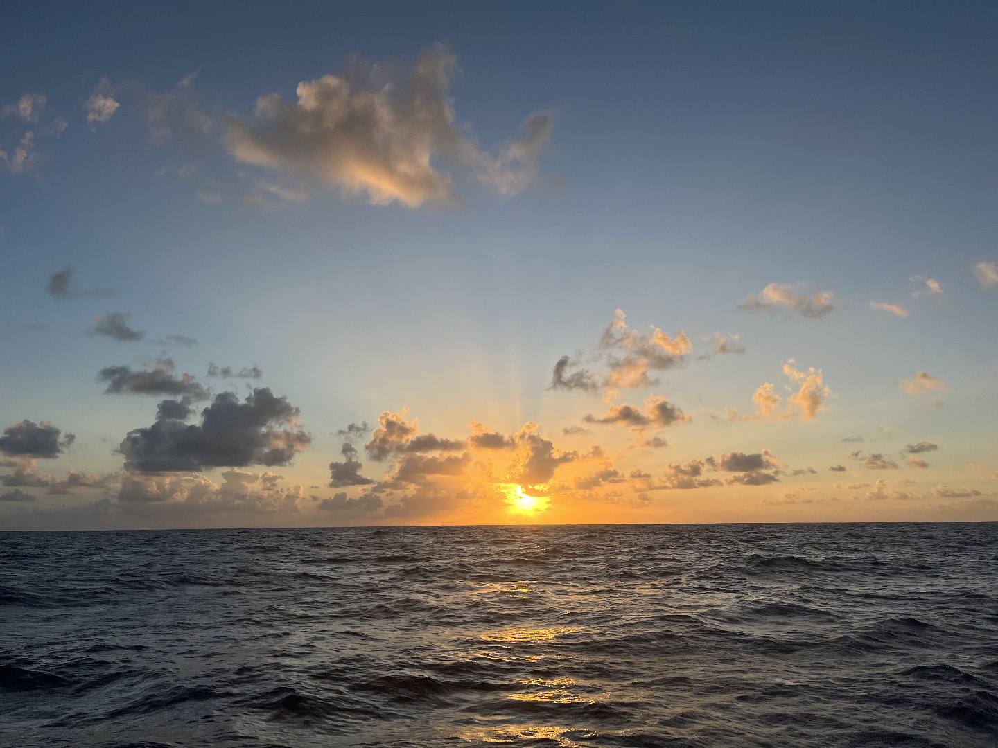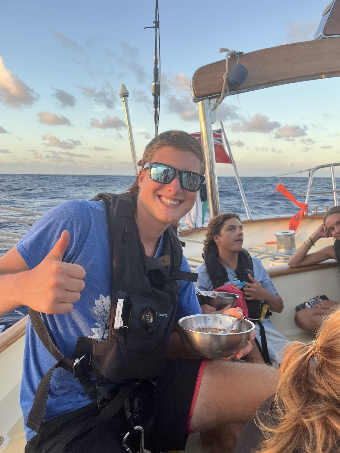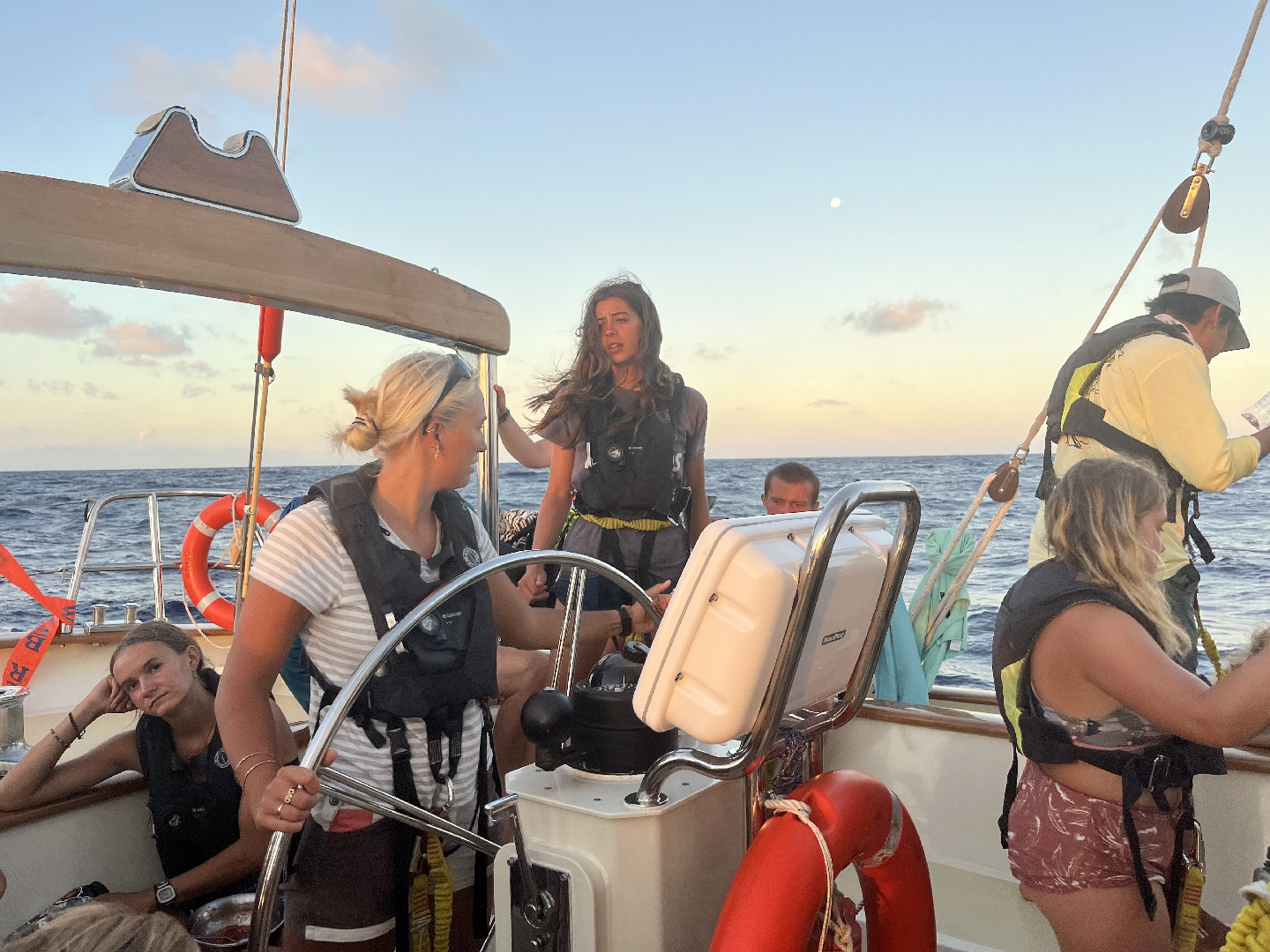 Deep blue water, sun, and some clouds on a 3-day passage to an Atoll in the middle of the Pacific Ocean described the day pretty well. Everybody started to get back in the role of the middle of the night and early morning watches after what felt like a short-lived break in Nuka Hiva from the 3-week passage. However, this time, the boat is sailing student-led, which so far has been going well. Nothing too special happened today. We started with lunch, then to class, then to dinner. But just because nothing special happened doesn’t mean the day was bland. Sometimes, these kinds of days out at sea are exactly what is needed. Tomorrow will be our last full day at passage until we arrive at the Ahe Atoll. Michael