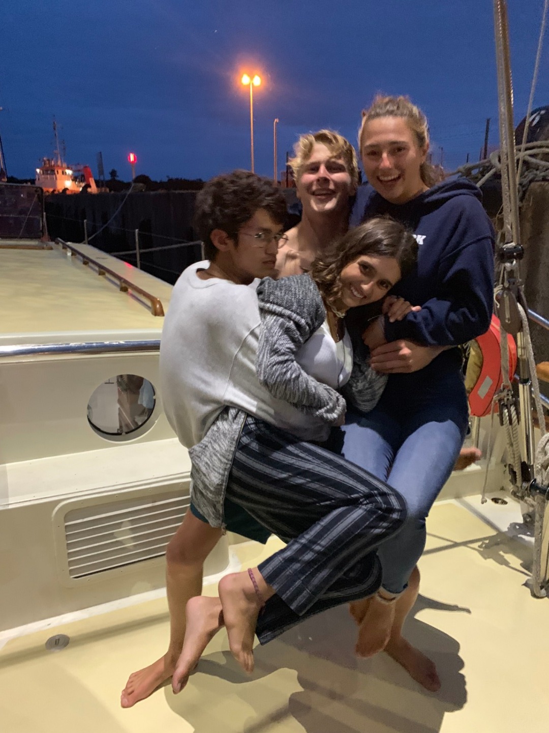 Once our shopping was done, the adventure of finding a taxi large enough for all our food began. This ended in the usual way… two taxis it is. The task of provisioning is not completed by this point, but once we are back by Argo, we have 29 other hands to help. The whole crew sprung into action and began immediately squirreling food away down below, under bunks, and into bilges. Argo can consume more food than all of us put together. That’s the general gist of provisioning for 31 people.