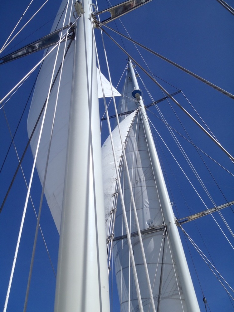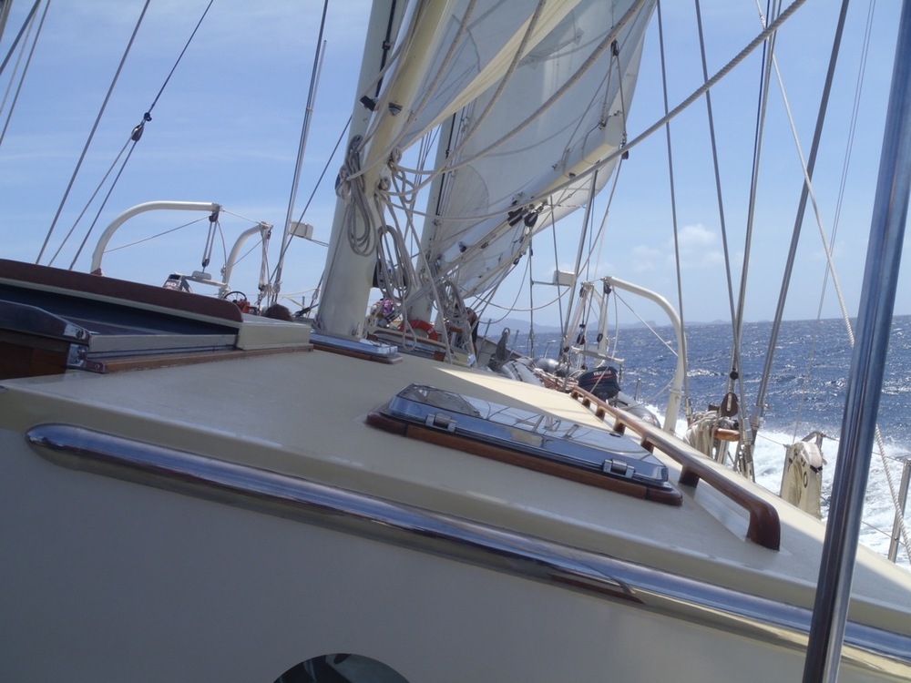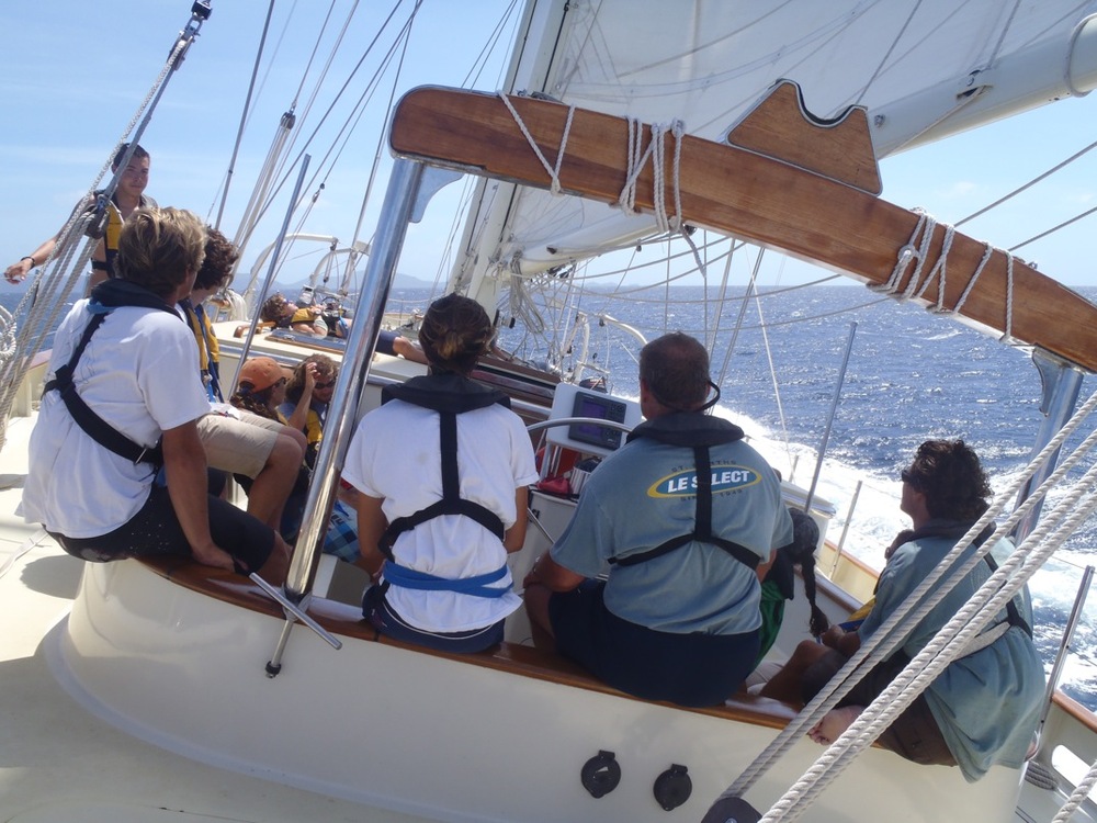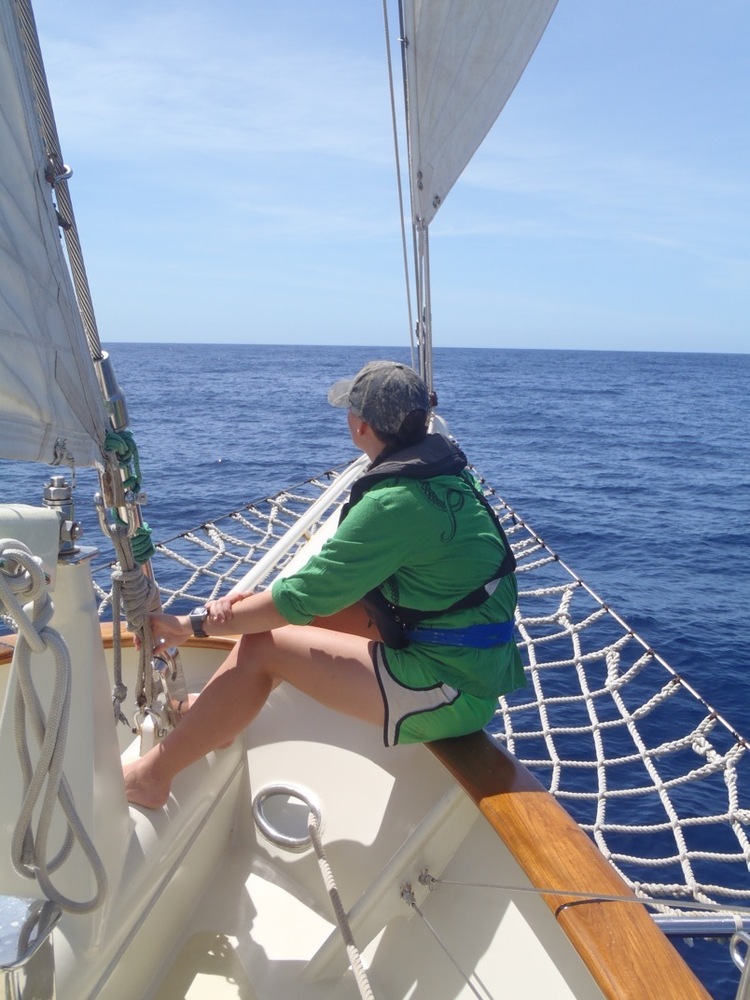 Finally, the job wheel has almost completed one full rotation, placing my name back at the top under skipper. Everyone onboard has tried every job, and so far, we haven’t sunk Argo. As a reward, the sea gods decided to smile upon us as we crossed from Jalousie Bay to Bequia. The morning started bright and early at 7 AM with all hands raising all the sails. Our first good omen came in the form of dwarf spinner dolphins, which decided to grace our bow with their flips, pirouettes, and majestic moves. Watch Team 2 took over the deck and had a ripping good sail. They managed to hit 11 knots, which for Argo is flying. Before lunch, Watch Team 3 took over and continued to benefit from the gusting wind, bright sun, and rolling sea. Lunch was chicken salad, and before we knew it, we could see our anchorage. Captain Steve ranked the sail as one of the top ten in his time, so you know it was one for the record books. Unfortunately, we also had to take our first exam as soon as we anchored. Down came the sails, and out came the pens. Our marine biology exam was not a walk in the park, but we all powered through. Sails were flaked and covered, and then swim time began.