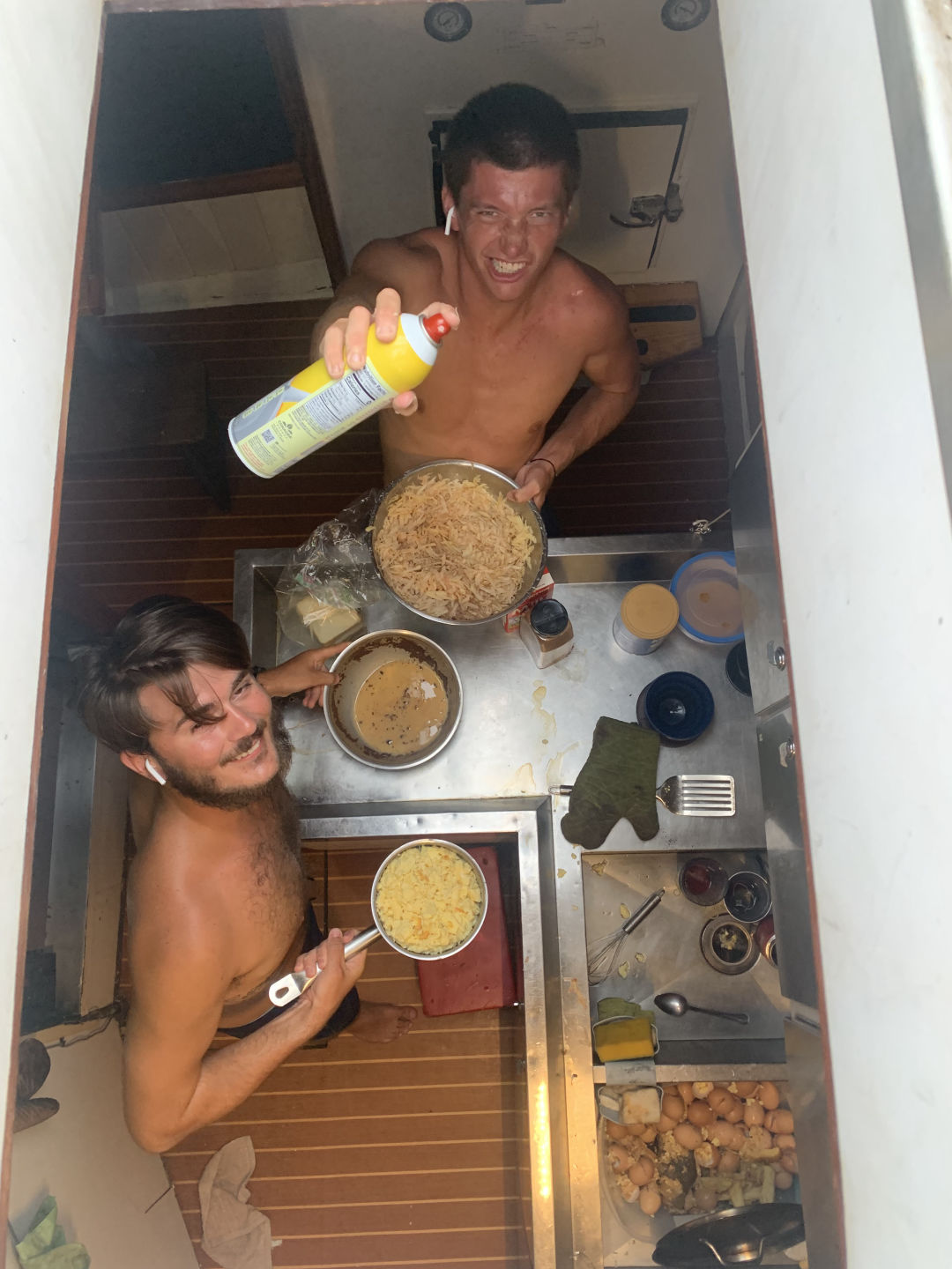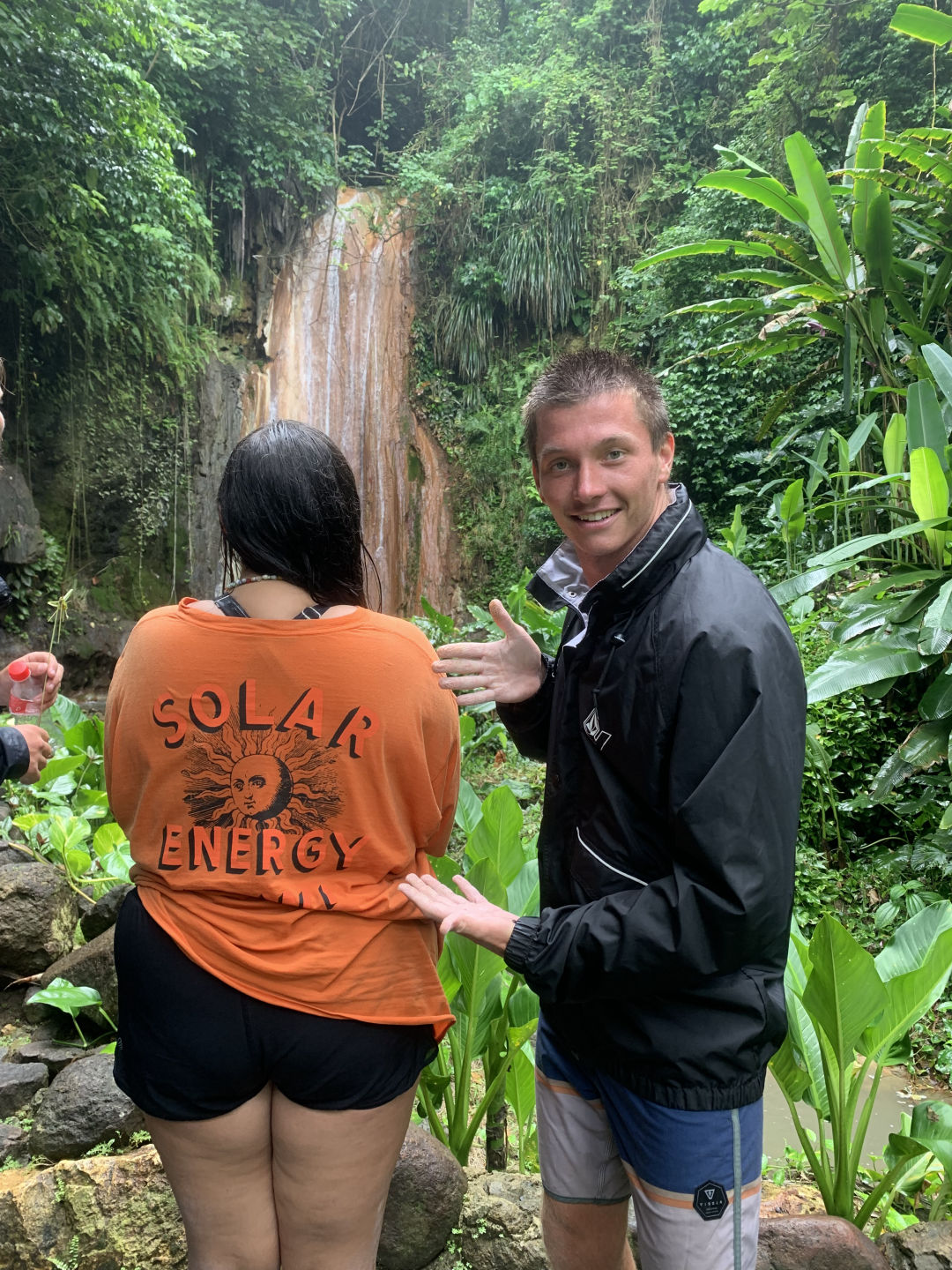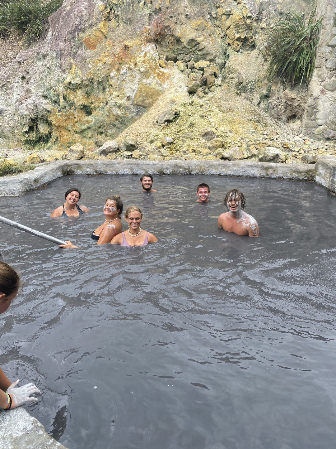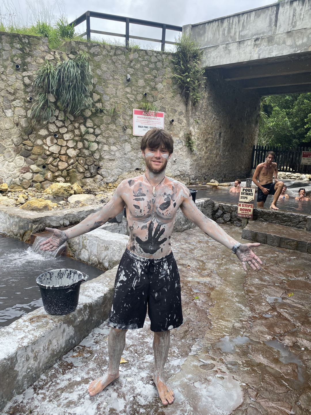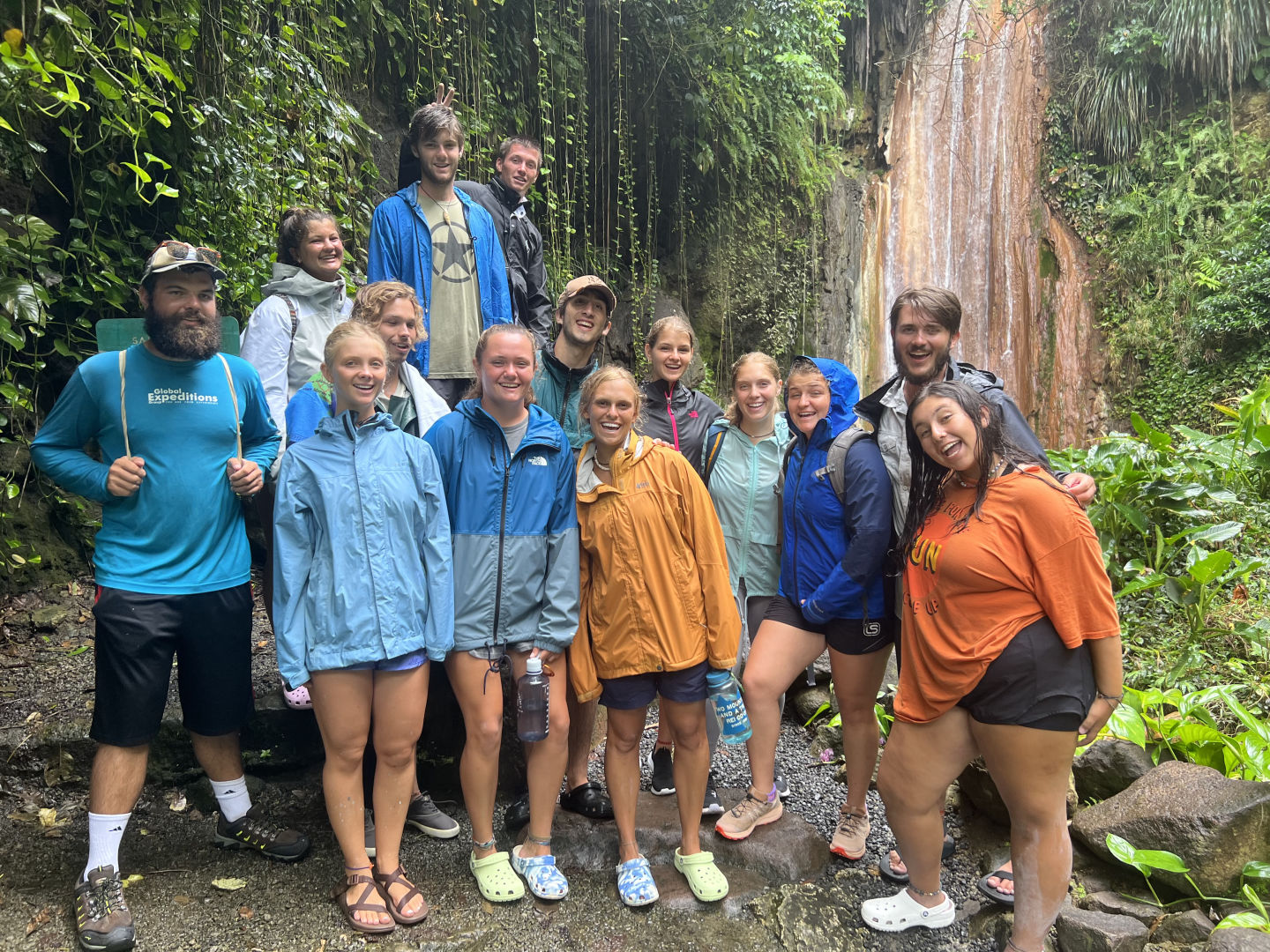 Today we woke up to another fantastic sunrise from under petit piton before getting served an amazing cooked breakfast of french toast, eggs, and hash browns. As this was an excursion day, lunch was also brought on deck with breakfast so it could be packed for a hike. Shortly after clean up, one of Peter’s park ranger team met the hikers on the beach. Involved in the hike were also waterfalls, botanical gardens, and a natural mud spa. Although the students loved this experience, no one enjoyed the mud more than Captain nick, who proceeded to roll around and soak in the muddy goodness. If it wasn’t for a strict deadline, he said he would have loved to stay there forever, splashing around in the wet mud. Back at home, I ran around the boat doing small jobs like greasing the head, repairing the foc’sle door, and taking up residence in the deep bilge of the engine room. After coming back from the hike, Kebo presented his leadership presentation to the group, which was all about leading with integrity, a very relevant subject onboard a vessel where everyone shares responsibility for almost all tasks throughout the day. And even better. After class, the students came up to find Gunnar had returned! To finish off the day, Ryan and the galley team pulled off another great meal before doing the daily squeeze, where we said our general appreciation for the day as well as an appreciation for the person to our left for what they bring to the boat.