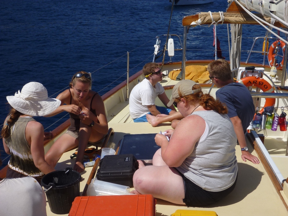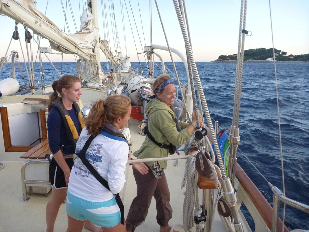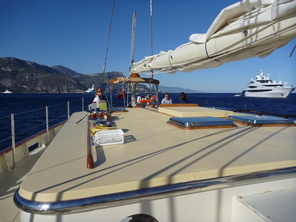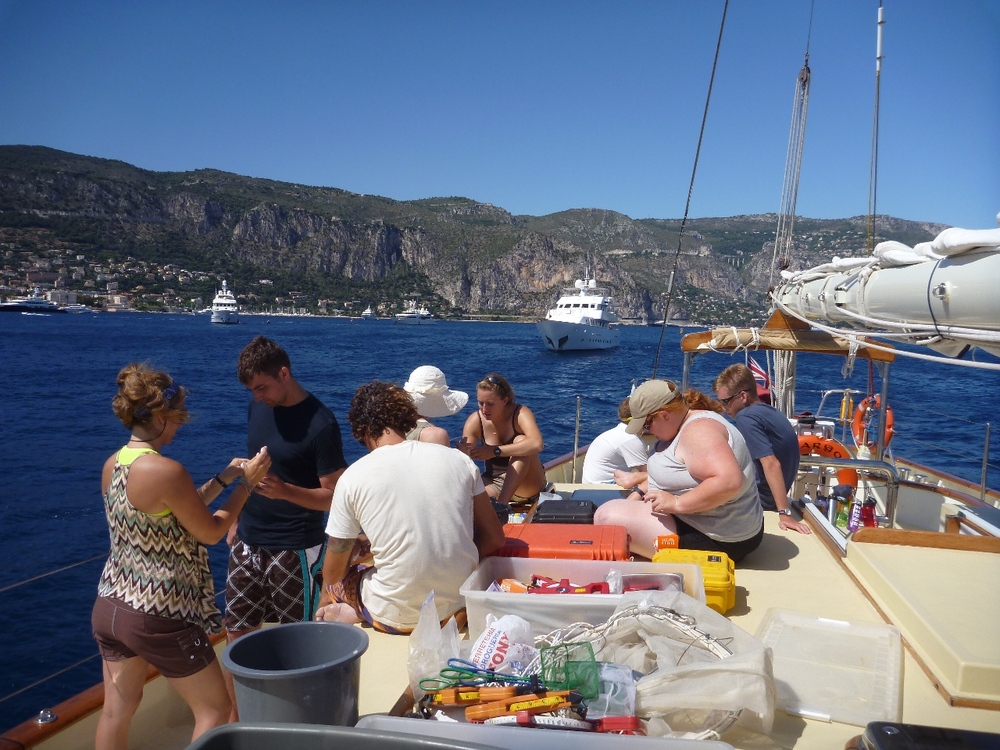 I’m always amazed at how much we fit into a day on SeaMester. Today was no exception. We awoke in Monaco, where we had some shore time to explore the streets, stare at fancy cars, and wander through the harbor, which had some amazingly large yachts. We then left and headed over to Baie De Beaulieu, and once there, it was business mixed with pleasure; we had sailing class, a little bit of science, and some downtime. During the science class, I pulled out all the Science gear we had onboard and had people look at the oceanographic tools available to them. This included sampling gear such as plankton nets, transect tapes, quadrates, and various nutrient tests. Afterward, it was the much-enjoyed swim time off the side of Argo. Some shipmates ogled over the yachts that were anchored next to us. As we were expecting some strong winds for our first night passage, we prepped the boat accordingly. This included putting a 2nd reef in the mainsail and running jack lines so we have places to clip onto at night. Following dinner, Jim returned from a business trip to grace our presence. Soon after Jim’s arrival, we hauled up our anchor and put up our mainsail and both staysails and headed over to Porto Venere, some 90-odd miles away. Hopefully, we will arrive there around lunchtime tomorrow.