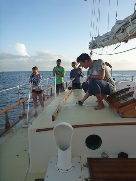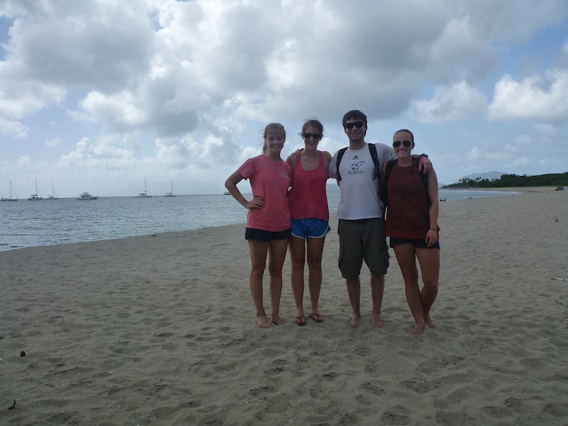 Today was an overall relaxing day in Nevis. We started off with scrambled eggs and bacon breakfast prepared by master chefs Jorge and Will. Those of us going for our open water dive certifications then completed the final knowledge review, followed by the daunting final exam, which we all passed! Meanwhile, the guys going for their advanced open water certifications went on an adventure navigation dive where they spotted some unique fish, including a stingray! We then had lunch, followed by dingy rides to shore for downtime in Nevis. We explored the island shops and restaurants, including the Fancy Jamaican Bakery, where I ate a very uniquely seasoned cinnamon bun. Many of us also followed our new friend Watusi who showed us the local coffee shop and marketplace. With our final hours onshore, we spent some time on a nearby beach, resting up for our long passage ahead. We prepared Ocean Star for passage to Antigua and then had some delicious risotto and salad before heading underway!