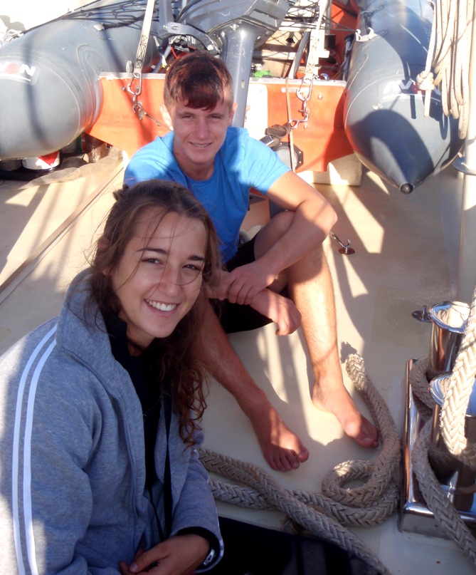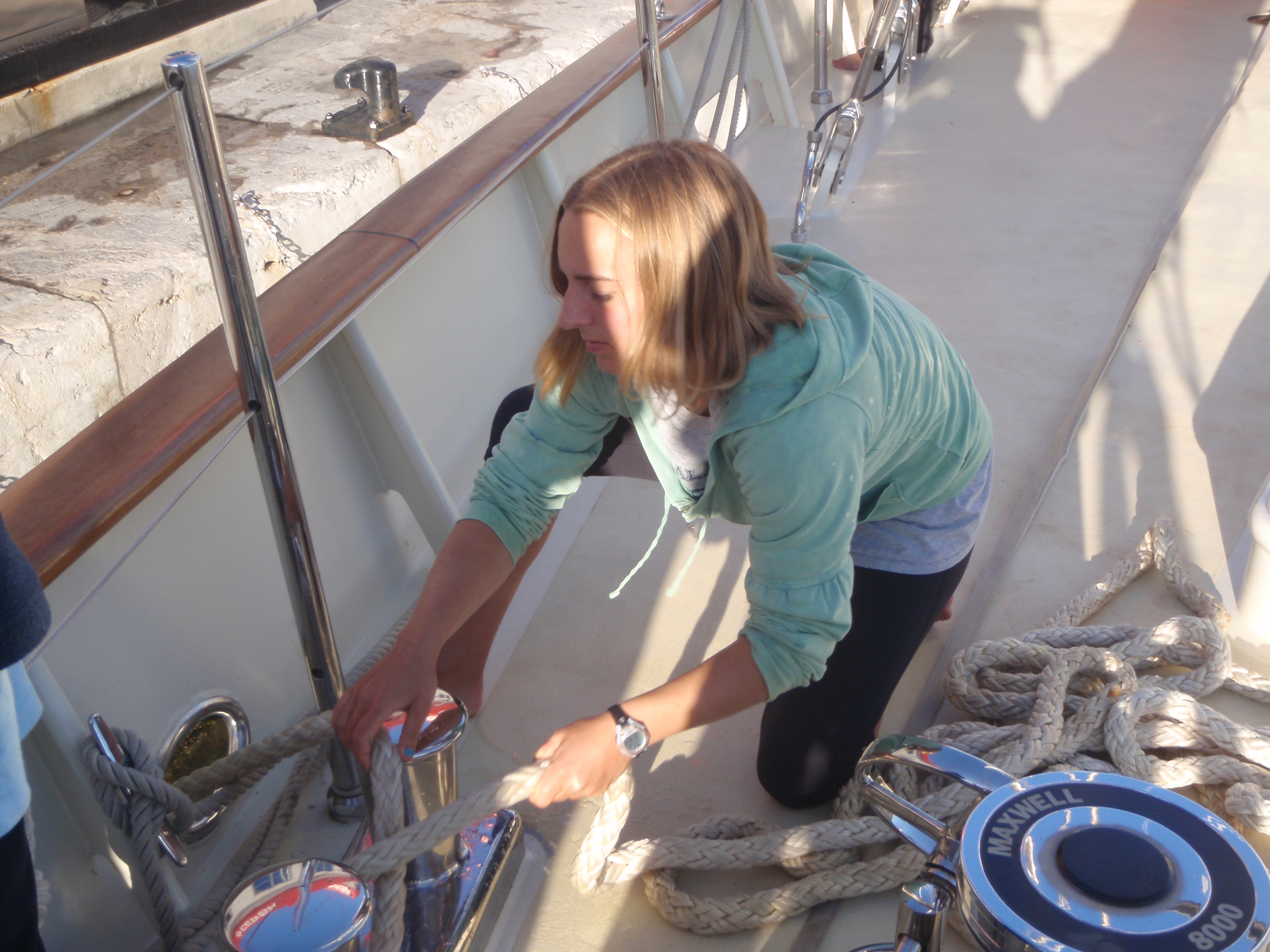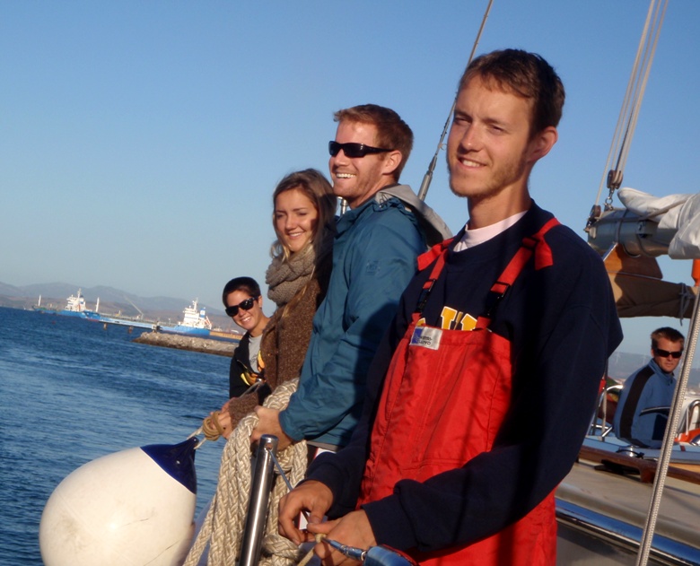 As we pass from the Mediterranean to the Atlantic, Argo’s crew become members of the Order of the Rock, a traditional merit given only to those who pass safely through the Straits of Gibraltar. Today was also a day of firsts: not only did we get to know our new watch teams, but we raised our new sails for the first time as well. As one of the people manning the halyard, I can definitively say that it did not set easily! In summation, we say goodbye to the Mediterranean and Europe as we sail for Morocco and the open ocean.