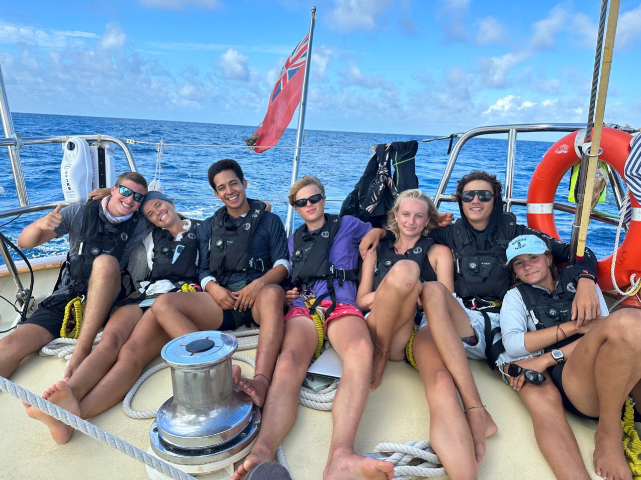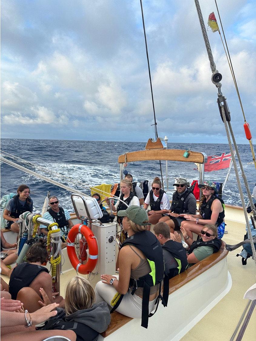 Cleaning day!!! There was no school today. We just cleaned the entire boat while underway, and it was a lot of fun! We divided into different groups to do different tasks around the boat (deck wash, bathrooms, kitchen, salon, bunks). The sea state has been a bit rough today, but the good thing is that we are starting to get a lot of wind, so we had to turn the engine off, and we are super happy to just be sailing all the way to Tahiti!!!! (hopefully). etc. etc. etc….. gracias bye.