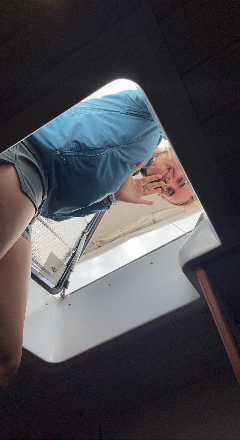 We started the day at an early 7 am, in which I had to wake the whole crew up. I figured due to jet lag, this was going to be the hardest job as skipper, but to my surprise, everyone was awake before 7 and was ready to go! For breakfast, we had a berry cobbler and yogurt. You could smell the fresh-baked breakfast throughout the boat. After breakfast, we got to our chores and clean up – this was followed by a meet-up in the cockpit (or what I explained as the steering wheel). Then we split into groups and began a more in-depth look into the safety points on the boat, such as what to do in case of all sorts of emergencies (man overboard, etc.).