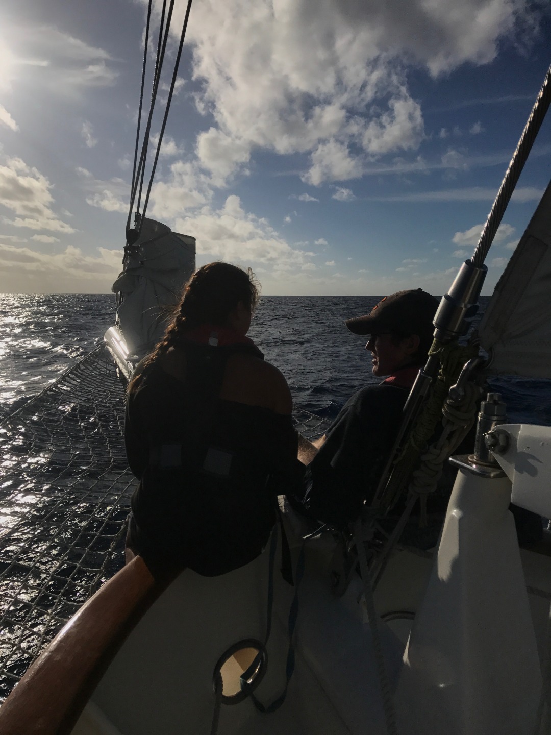 Voyage life is treating us all very well so far! Most of us have grown our sea legs and are enjoying Argo’s constant rhythmic rocking. Today was a very relaxing passage day, and the weather was amazing, considering we are literally in the middle of the Indian Ocean. Early this morning, we caught another fish; unfortunately, there was nothing in its stomach for the group conducting research on fish stomach contents, but it made for a delicious lunch of Mahi-Mahi. Everyone is settling in very well with our new watch teams. Although the bonds made at the beginning of the trip with our first teams will remain in our hearts, it is nice to get to know crewmates you may not have gotten a chance to really talk to yet. Boat life has definitely become almost second nature for us and will be all we see until we arrive in Mauritius in about ten days. Academics are really picking up on this passage, and it is evident by the crowded salon, constantly full of laptops and books. Today, we had both Marine Biology and Leadership, yet many of us were too preoccupied worrying about our Oceanography literature review paper, which was due before dinner. Everyone studied really hard today and put in their best effort to catch up on work as midterms slowly creep up around the corner. Overall, it was another beautiful day sailing without the loud hum of the motor. We were even surprised by a beautiful rainbow ring around the sun, and the waves never fail to amaze us. Fingers crossed that the wind picks up, and we can continue to make great headway as we travel across the Indian! Until next time!