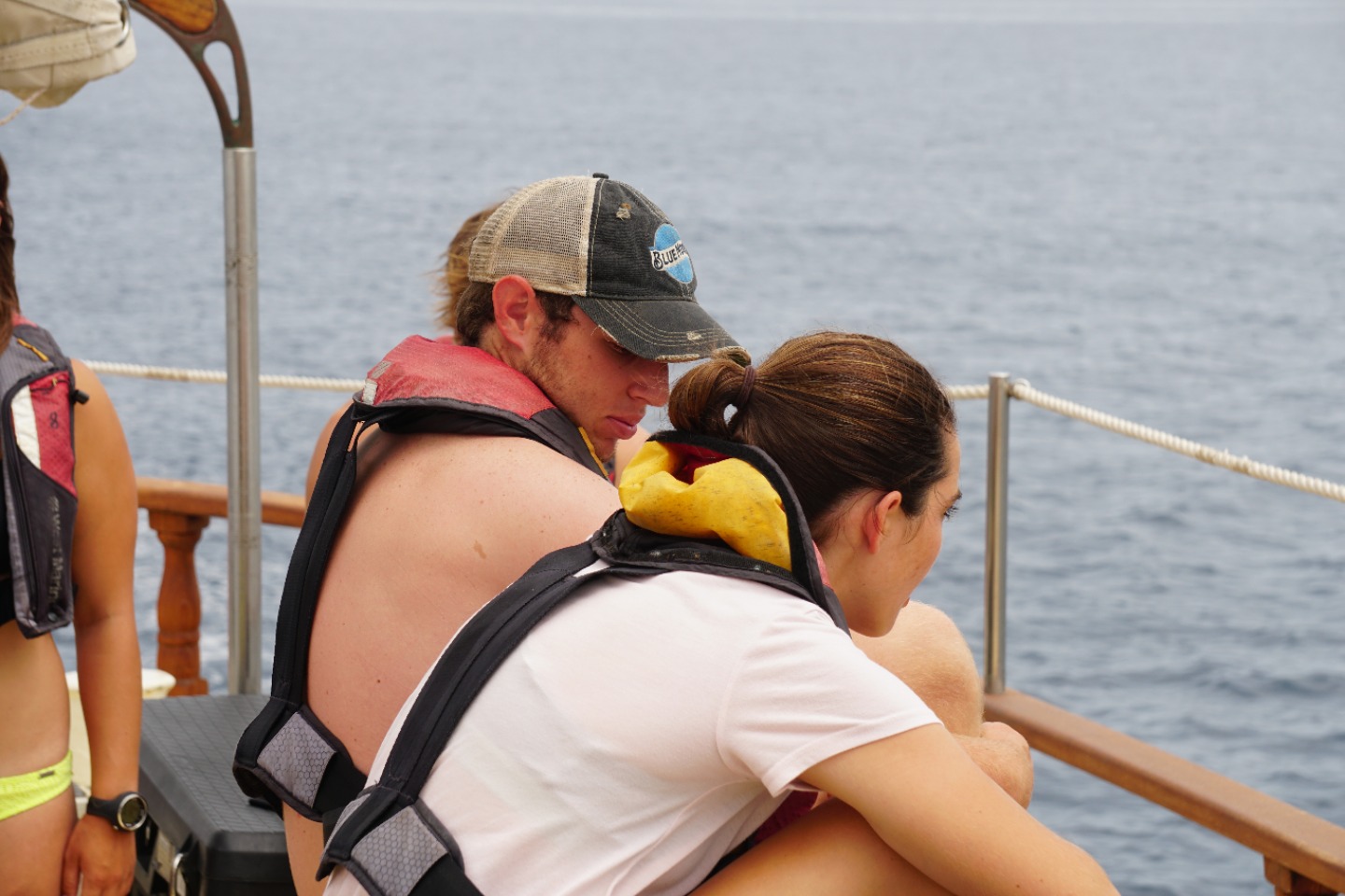 Bienvenue Dominica! We’ve arrived at the furthest point South of our voyage, a small island that’s part of the Leeward Islands. Overnight passages are becoming easier for the whole crew, granted that this is only our second one. My watch team was at the helm when the clock struck 0000 hours, and we were surrounded by light. The moon transformed Ocean Star’s sails into humongous white lanterns that floated over the calm, rippling waves of the Caribbean. Way above us, an array of stars more numerous than I had ever seen danced over every inch of the Milky Way, and not one of them was hiding from our sight. Under us, the waves that broke against the hull of the boat twinkled with bioluminescent plankton. Not much complaining can be done about a passage that has a clear starry sky, bioluminescent waters, minimal waves, and Frank Sinatra (thanks to Jack). It sure beats watching Netflix from the comfort of our couches at midnight.
