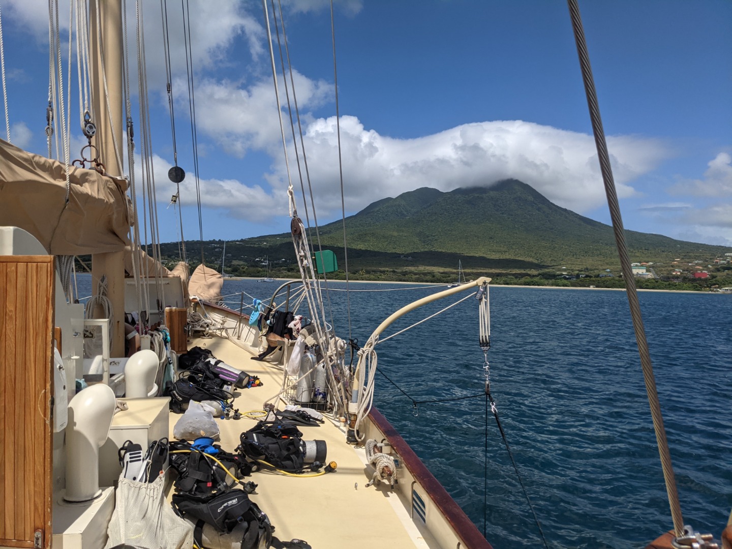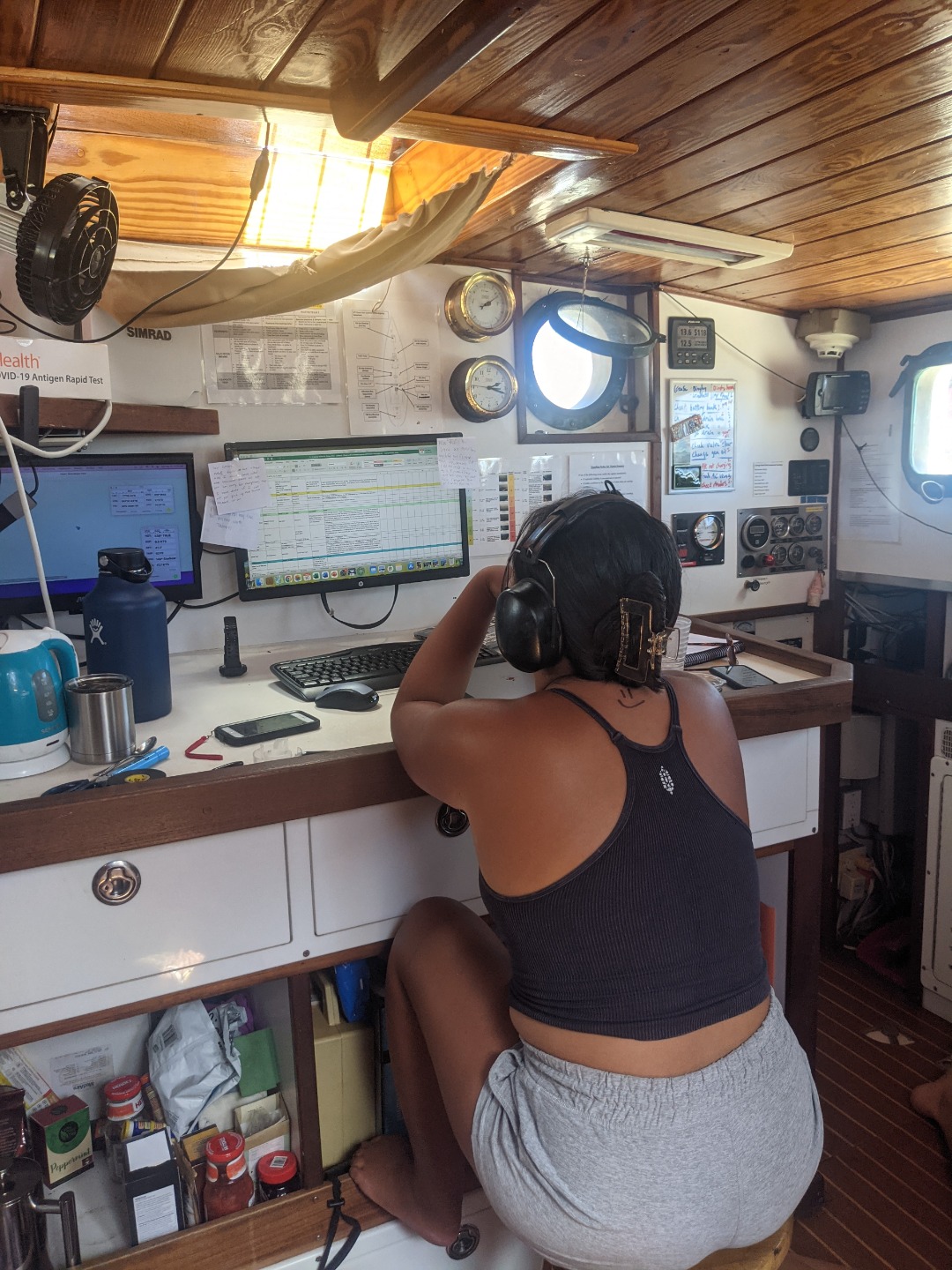 After we reviewed the phonetic alphabet and proper radio and distress callings, we sat down to take our exam. Let’s just say there were BIG smiles all around after we got our certification scores back. After that, we all crammed our presentations in to present them later this day. We had lunch and went over our rescue exams. After our rescue exams, we had our second scenario of the day- this time, it was 10x more chaotic with Alex and Sunny in the water as victims as well. There was so much going on in this one- Heddy was at the bottom unconscious, Amanda was panicked at the surface with lung over-expansion, Sam was a very concerned mother of Heddy, and Alex and sunny had an extreme amount of cramps and were annoyingly in the way. It was great! We saved everyone again and became fully certified! After this, we did a messy BA where we cleaned out the bilges, line lockers, had a massive pit, anchor locker, ad more.