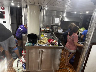 After lunch, we proceeded to have a boat appreciation day, where we were split into teams to complete different tasks. A few of them are cleaning the haul of Argo, cleaning the deck, cleaning the galley (kitchen), etc. It took us half a day to clean her. We got new sheets, which everyone is ecstatic about. After cleaning Argo, we had our daily ocean shower while others took naps. After that, we had dinner, which was chicken stir fry. I then concluded dinner with my question, “What was your first job?” and then a squeeze wave. Today also happened to be provision day, so we spent an hour organizing and shoving food for one week, which still happens to be a lot of food. The receipt for everything happens to be taller than our 5″11 instructor, Anna. To conclude our very long day, we watched the movie Luca, which happened to be based on where we’re currently staying.