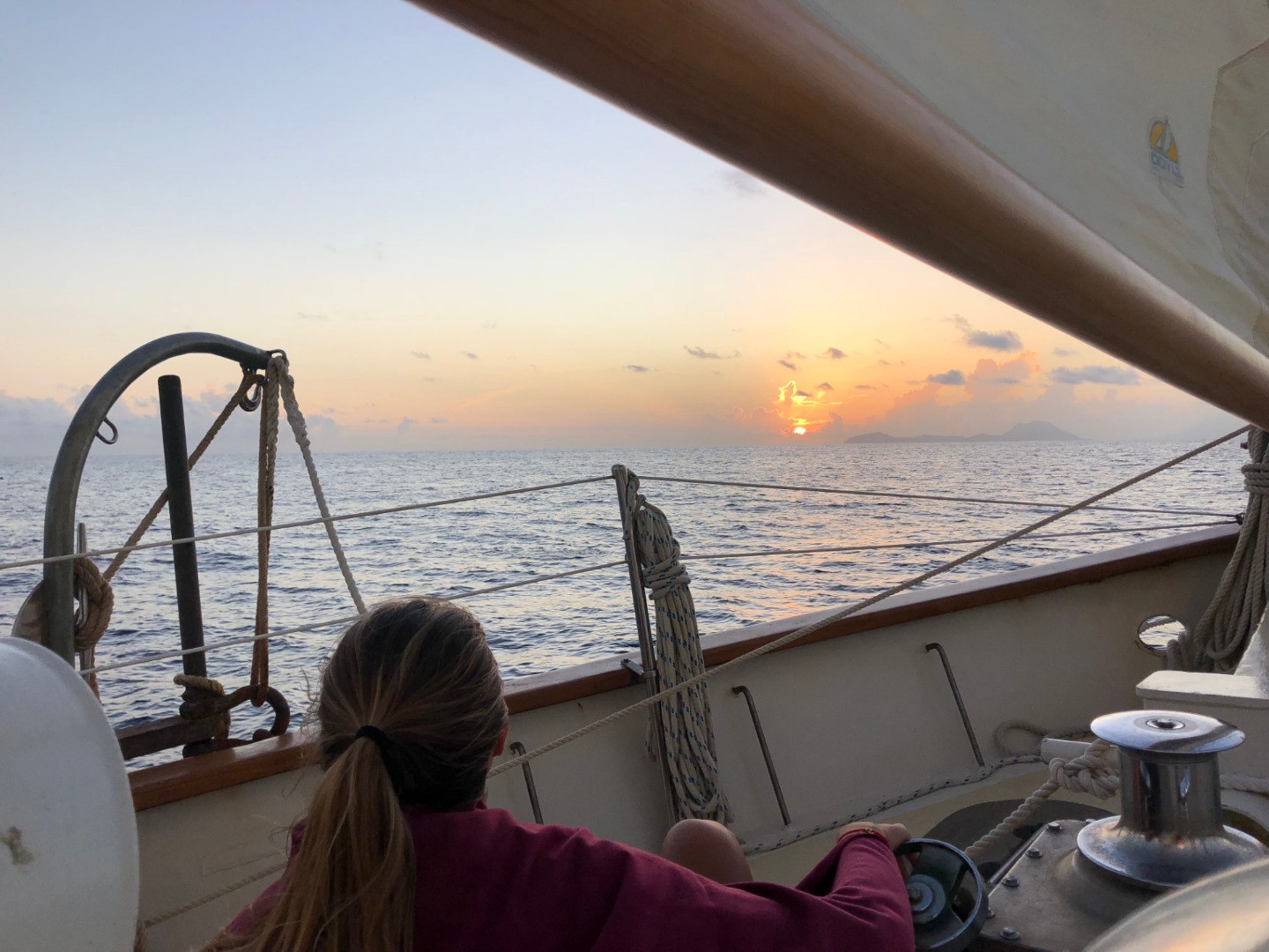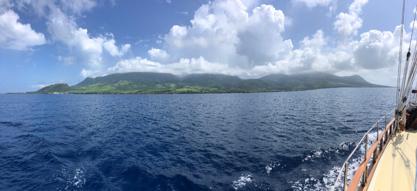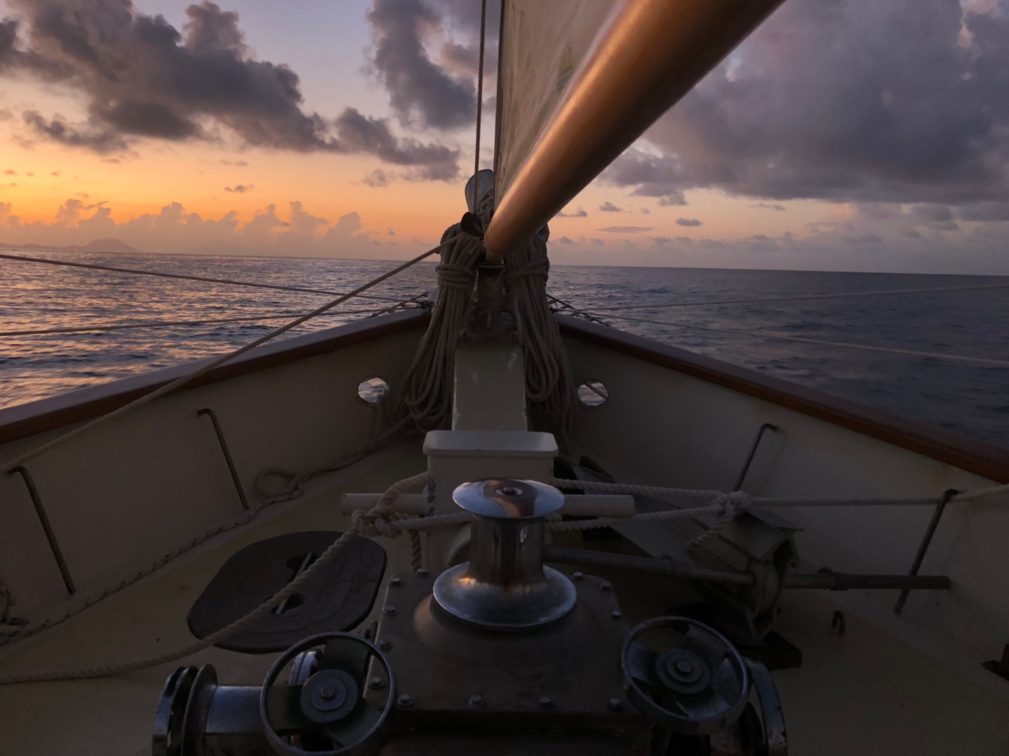 Today we had our first overnight watch where we were organized into watch teams that would make sure the rest of the crew could sleep safely while not on watch. The teams would have hourly boat checks to make sure everything was running smoothly, including checking bilges, logging position, and checking gauges. Other than some rain in the morning, we had a great smooth passage to St. Kitts. The sea was flat as a pancake, with a light breeze on our faces to keep us cool. We made great time, passing island after island on our watches. It was originally planned to be a 26-hour long passage, but we got it done in just 18 hours.
